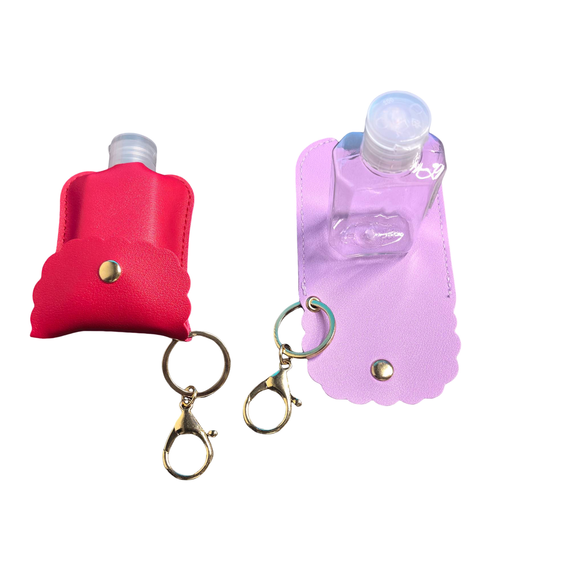 Pu皮携帯式無手洗い液分注瓶皮カバーキーホルダーとストラップと60ミリリットル分注瓶セット