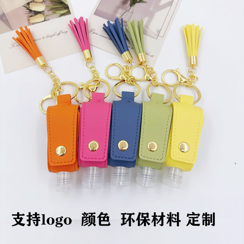 创意皮革洗手液瓶皮套钥匙扣带流苏便携式外出包包挂件配件钥匙链