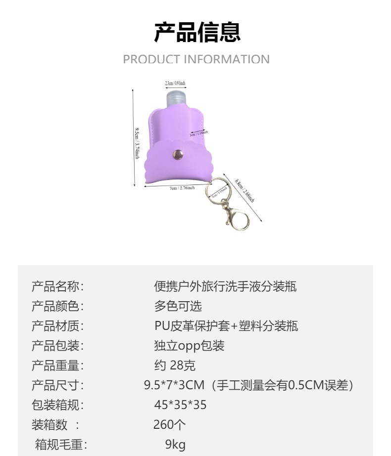 クロスボーダー専用防皮pu携帯型手洗い瓶分注瓶皮カバー香水瓶キーホルダー