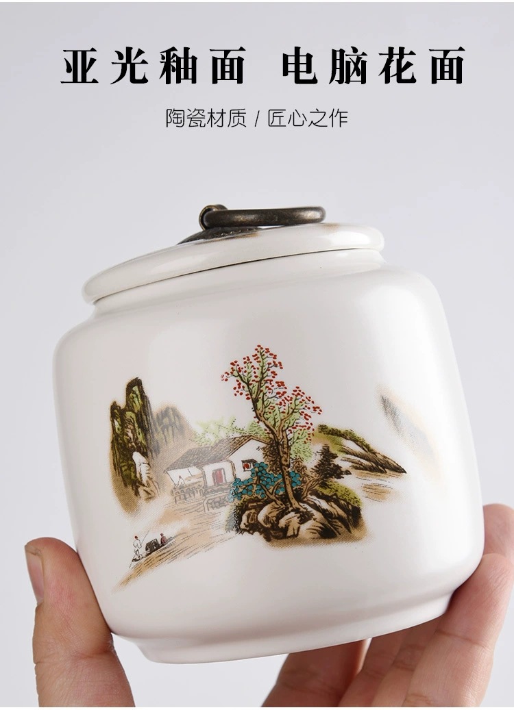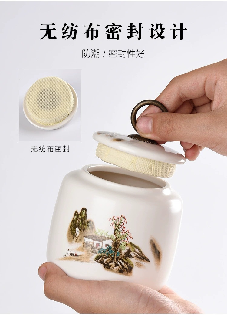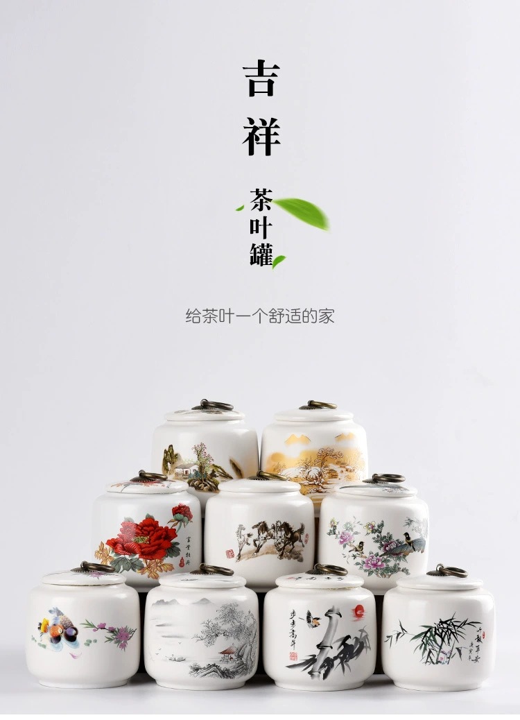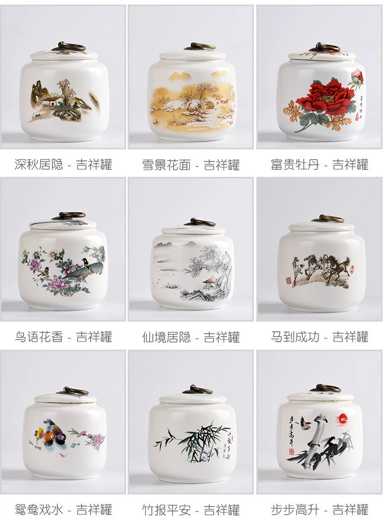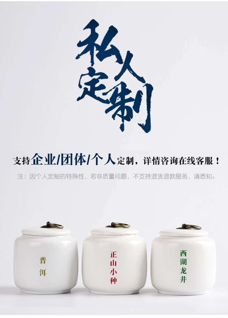 セラミック茶缶小型密封缶防湿茶缶家庭用卸売カスタマイズ可能な白磁小型缶密封防湿