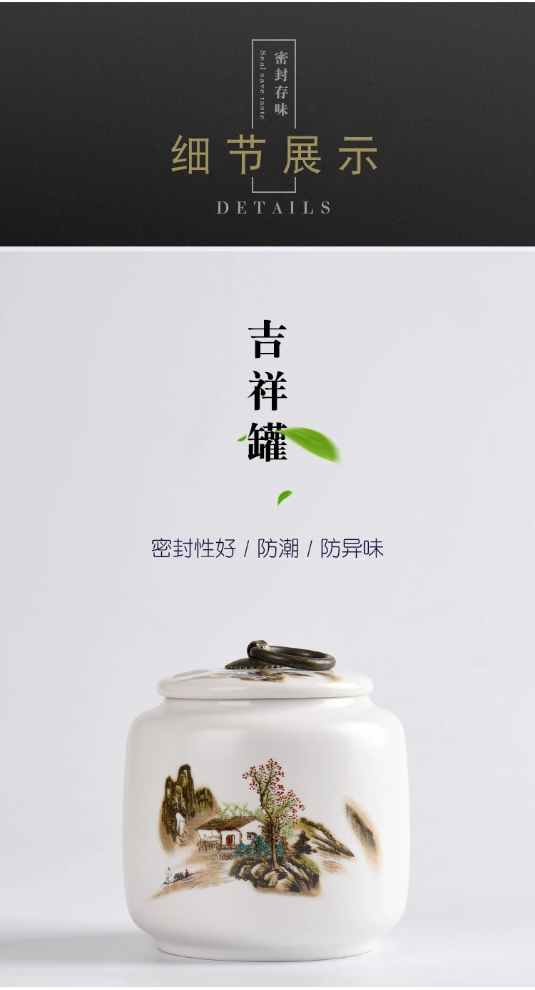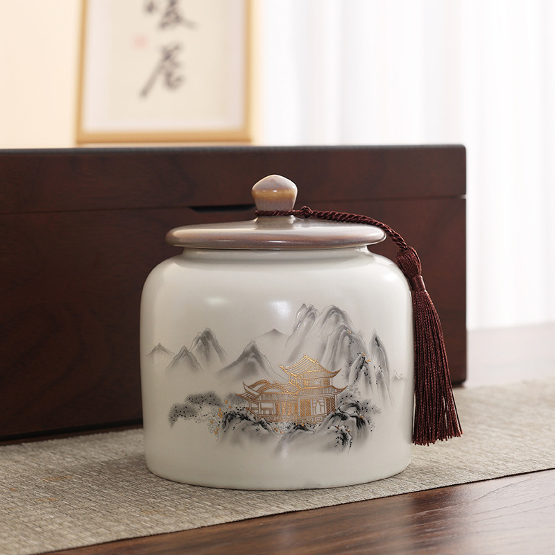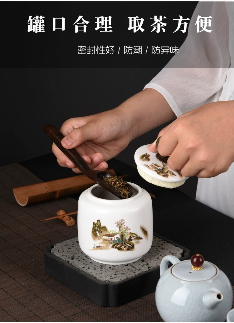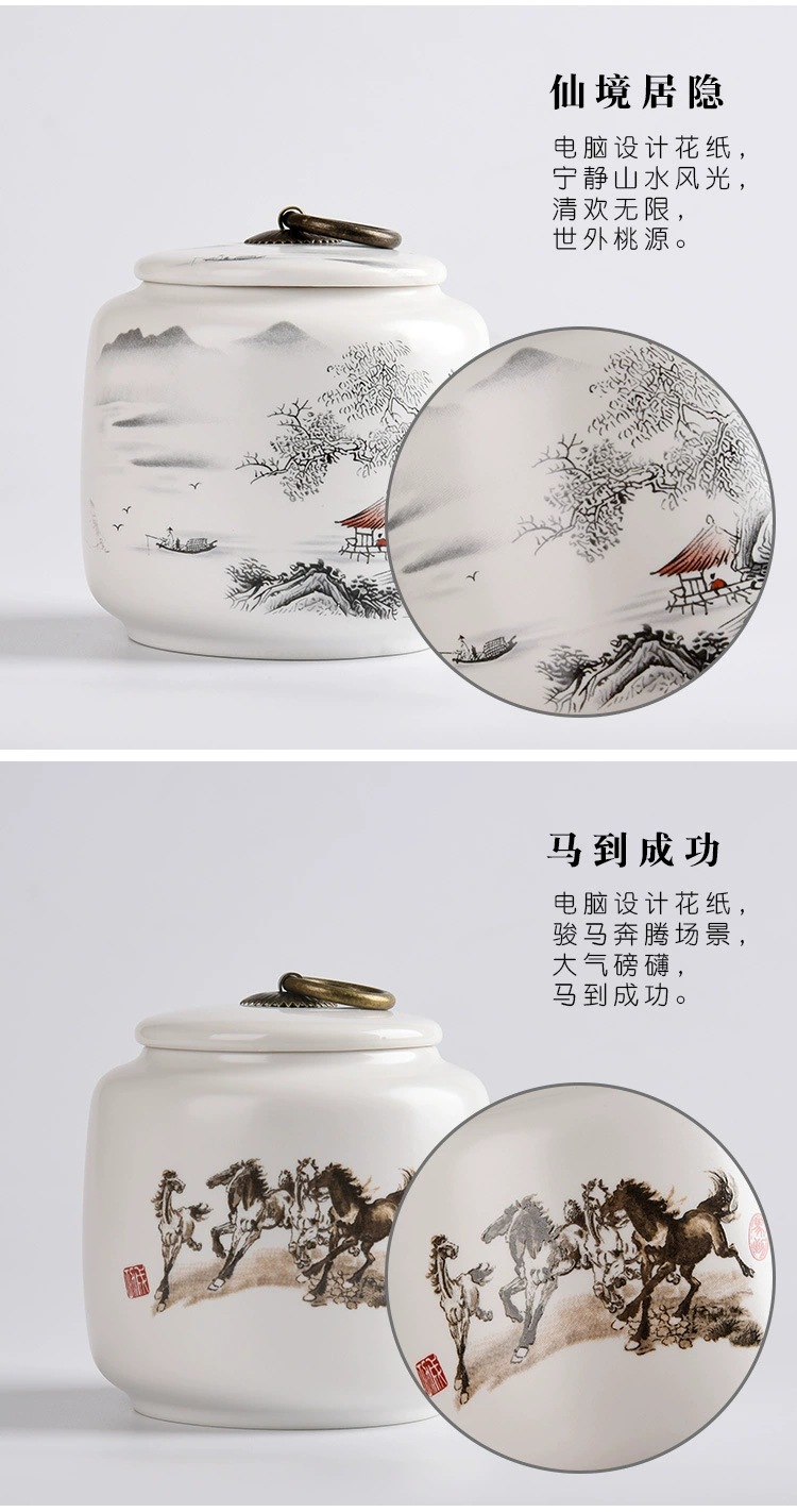 セラミック茶缶小型密封缶防湿茶缶家庭用卸売カスタマイズ可能な白磁小型缶密封防湿