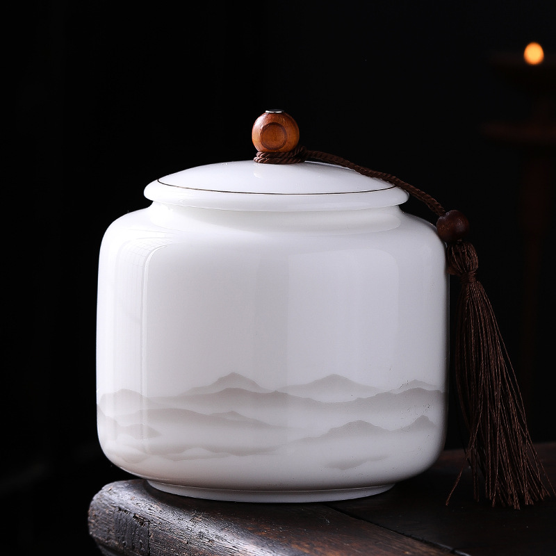 羊脂玉茶葉缶密封缶貯蔵タンク精品高級大サイズ精品陶磁器家庭用防湿缶プレゼント