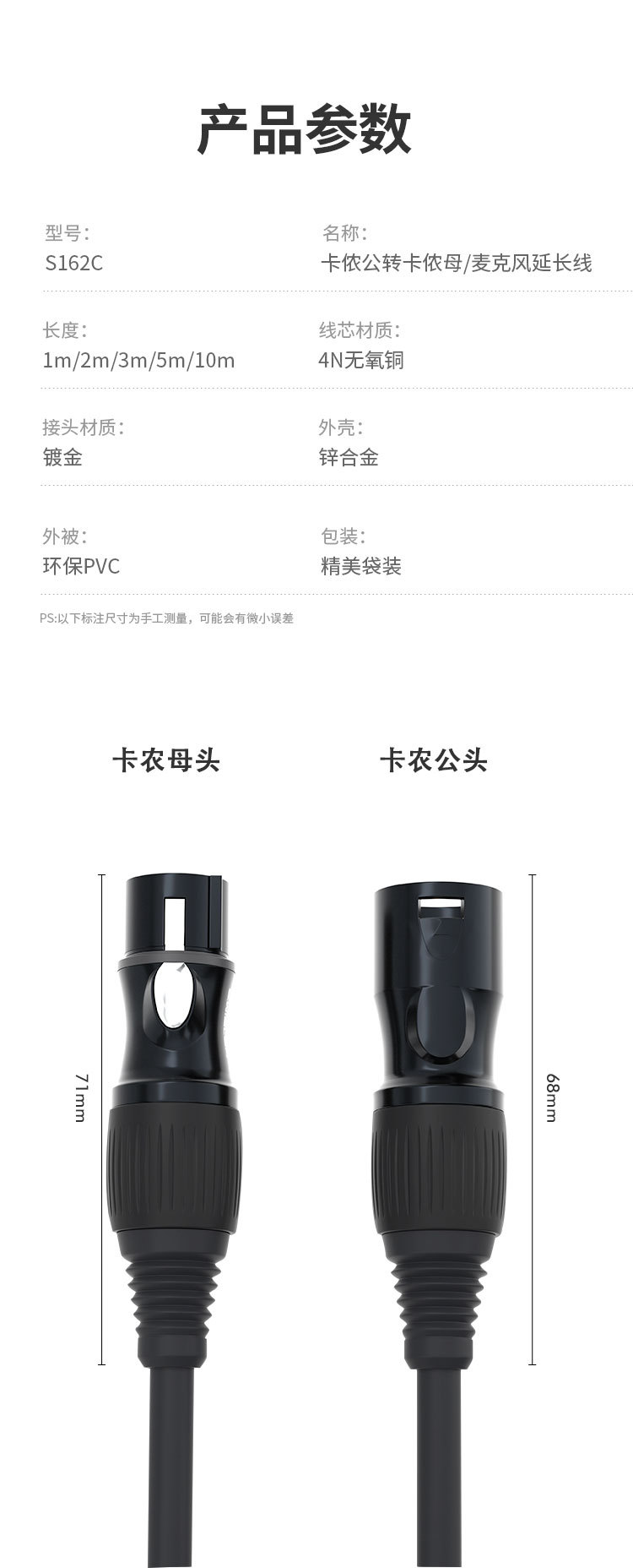 公对公卡侬线母对母 卡农公母平衡xlr音频线灯光三芯卡龙线公对母