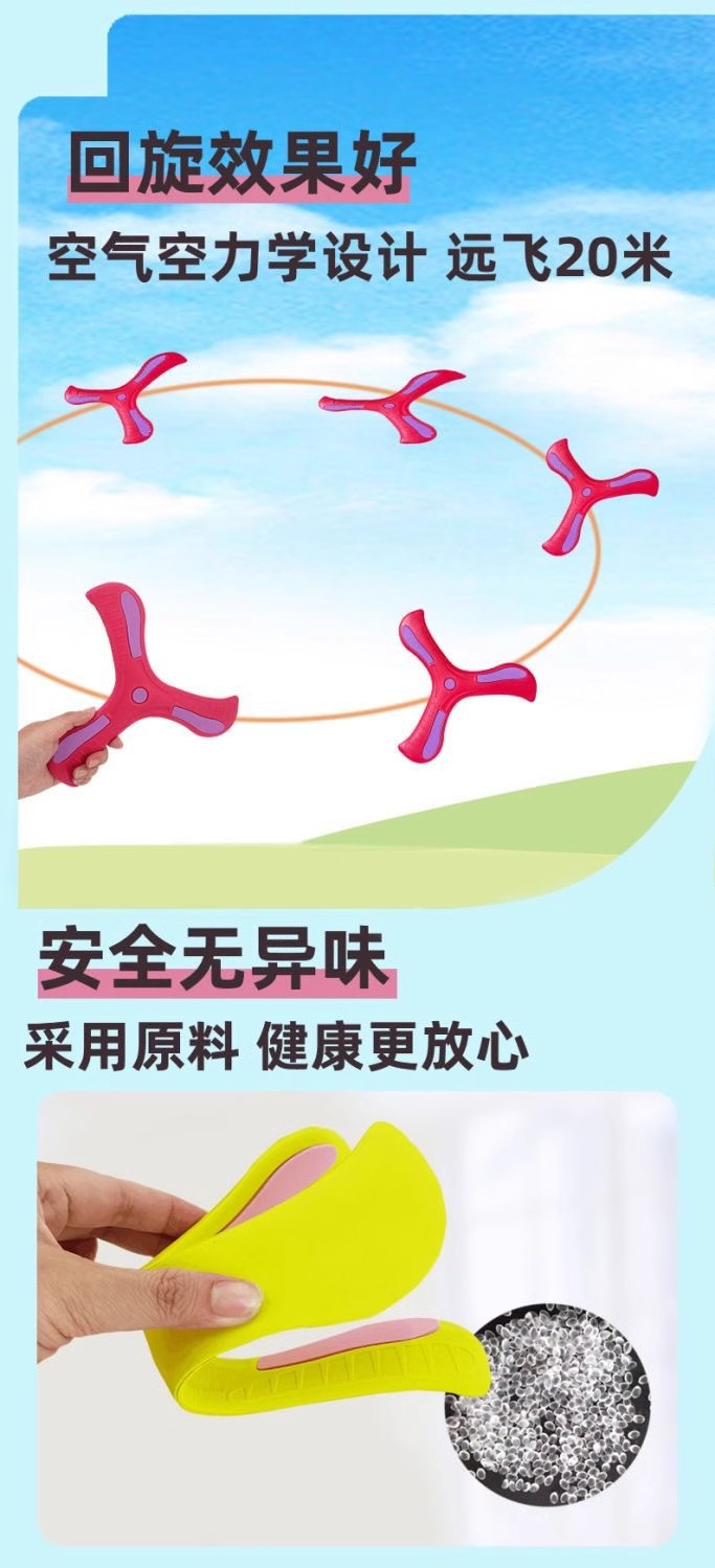 儿童回旋镖大玩具飞回来摔不烂软飞盘玩具软胶三叶互动手抛