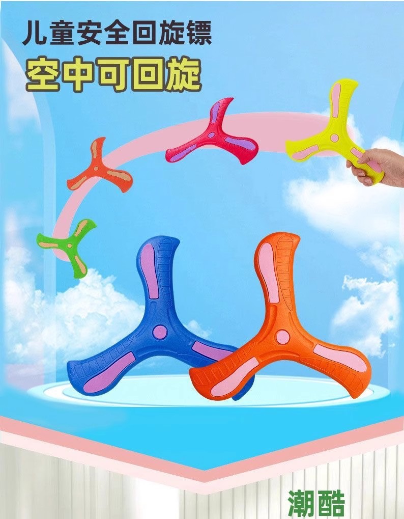 EVA三叶回旋镖儿童户外草坪回力镖旋转手抛自动飞回飞盘玩具批发