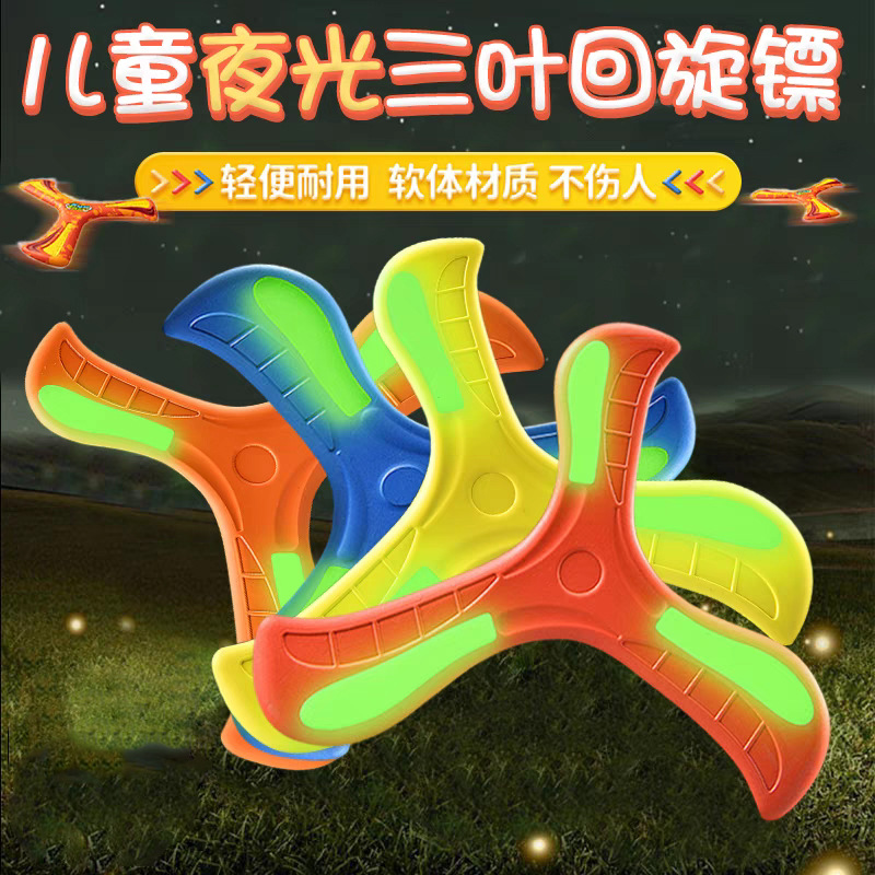 炫酷夜光EVA回旋镖 儿童户外玩具发光旋转三叶互动手抛回力镖