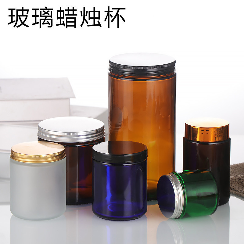 茶色アロマキャンドルカップクリエイティブ大口キャンドルガラス缶アルミ蓋シンプル密封アロマボトル燭台スポット