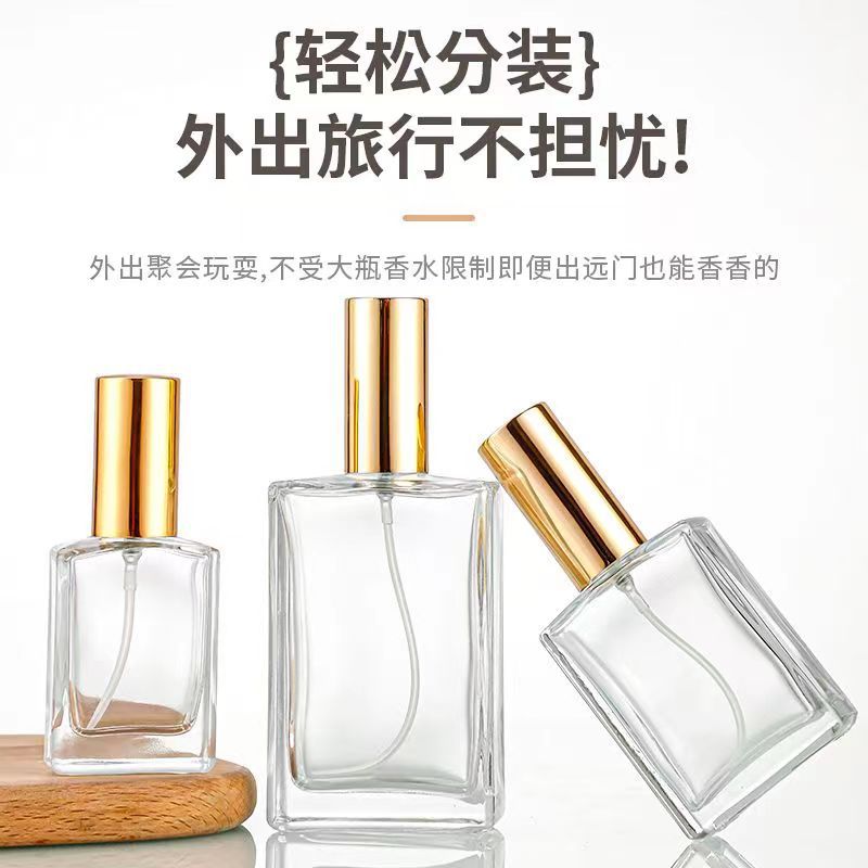 现货50ml扁方高方卡口透明玻璃香水瓶化妆品喷雾瓶空瓶分装瓶