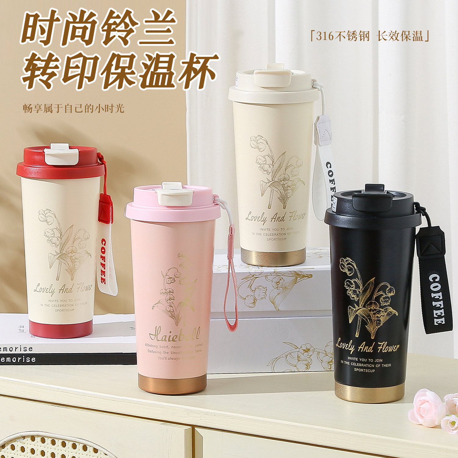 316不锈钢铃兰保温杯女生高颜值咖啡杯大容量便携吸管杯学生水杯