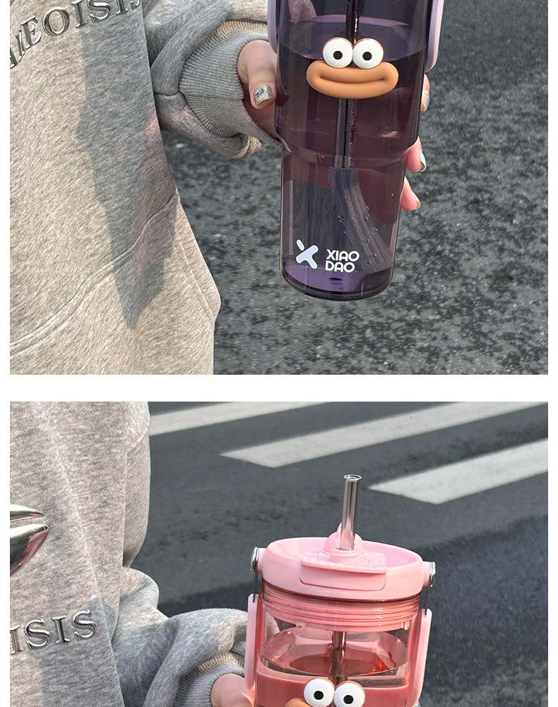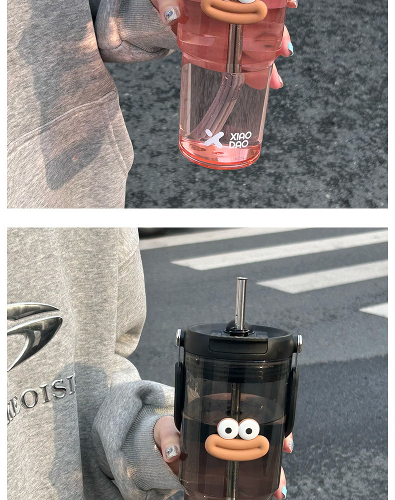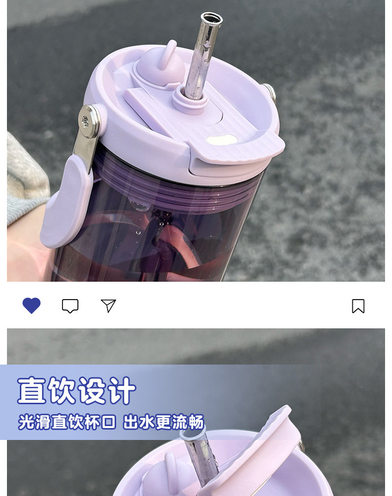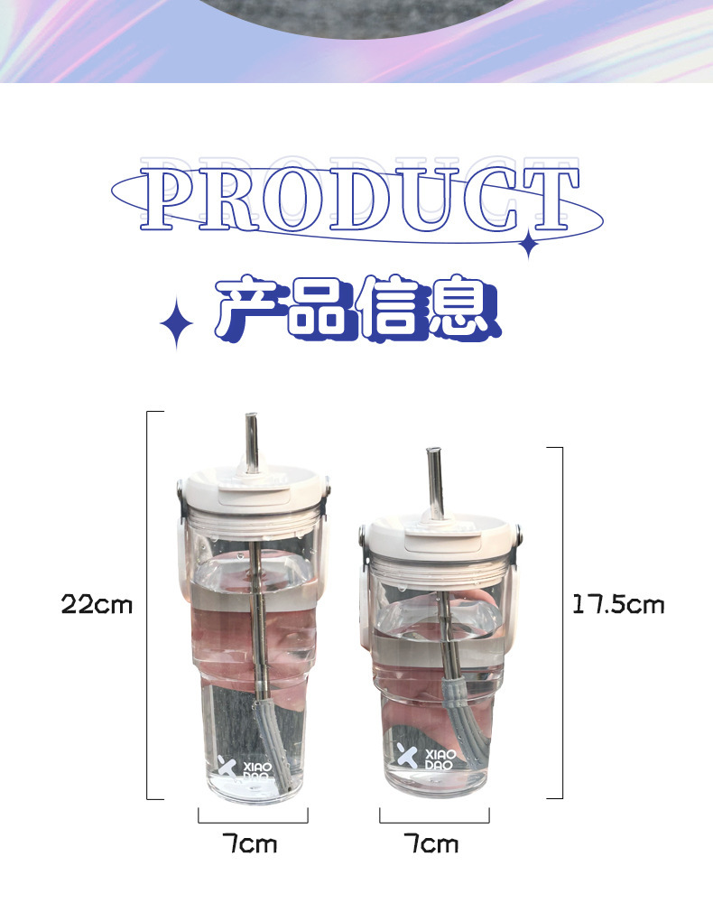 夏ins風シンプル大容量プラスチックカップ携帯ハンドルカップシンプル車載ストローカップ