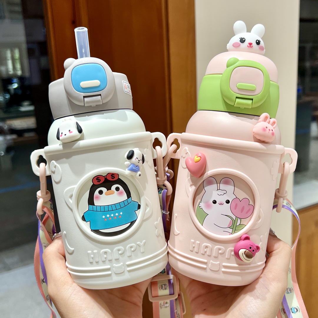 かわいい子供保温カップストローカップ316大容量小学生通学専用保温ポットかわいい風水カップ