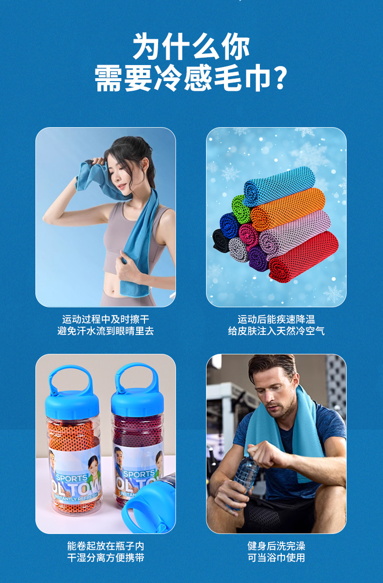 クロスボーダー冷感タオル屋外スポーツタオル吸汗速乾氷タオルジム氷タオルロゴカスタマイズ広告