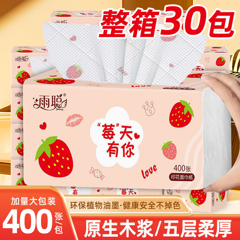 雨聡30包いちごプリントティッシュを厚くして、家庭用の湿った水のナプキンの家庭用タオルトイレットペーパーを厚くした