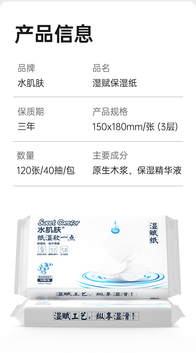 水肌湿賦保湿紙保湿心柔ティッシュ赤ちゃん専用ティッシュ120枚40枚全箱卸売り
