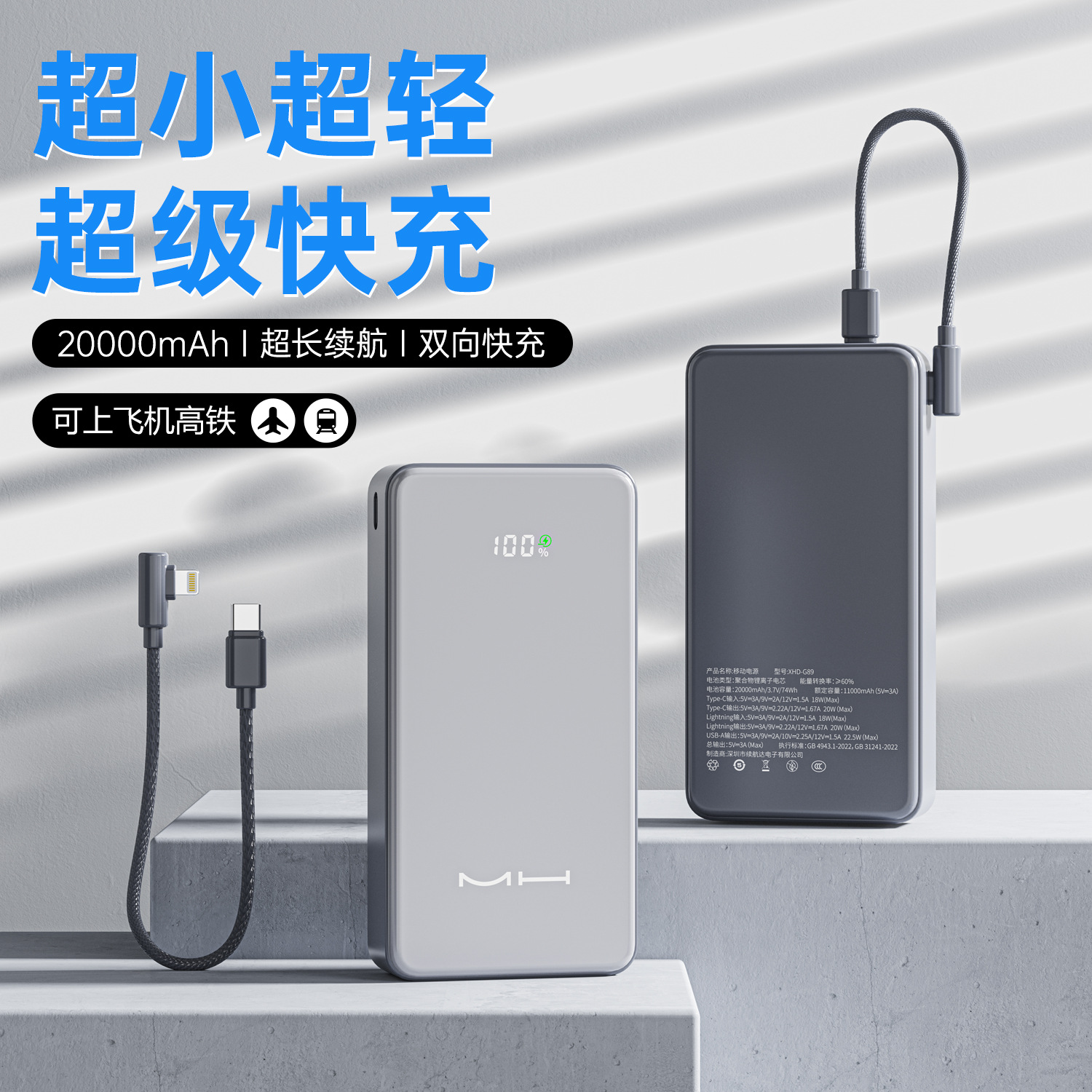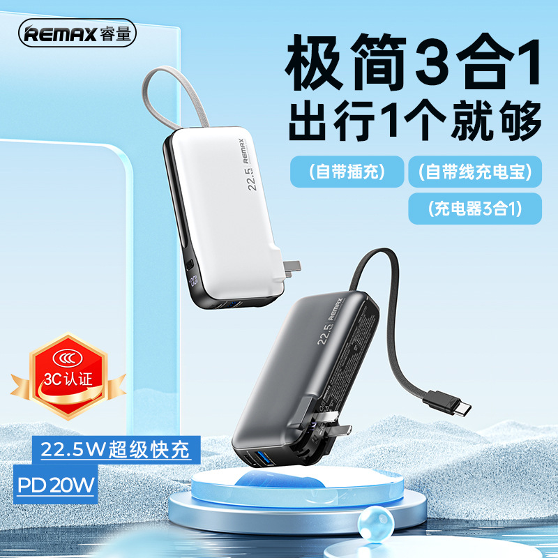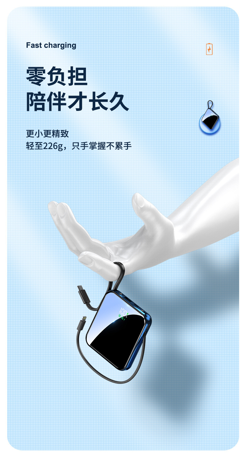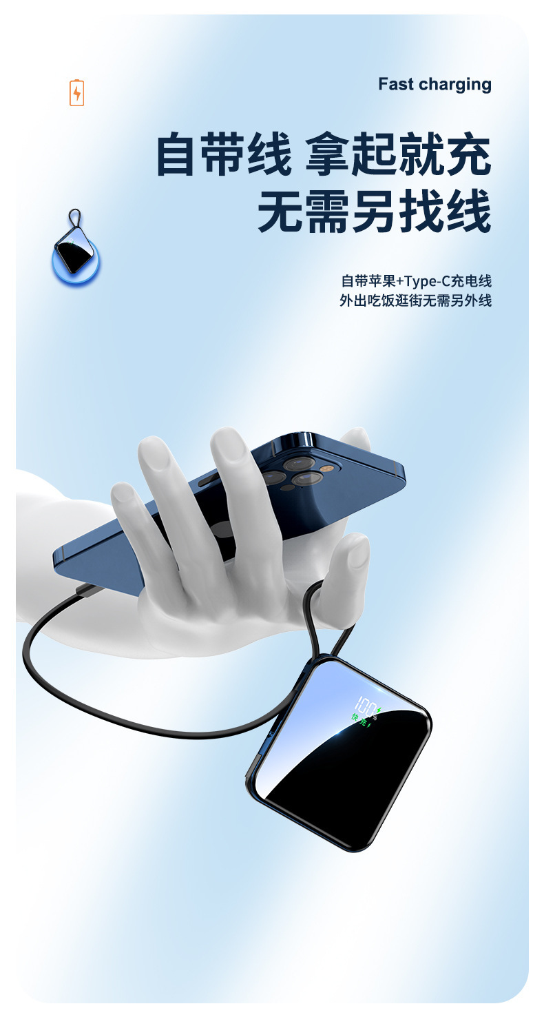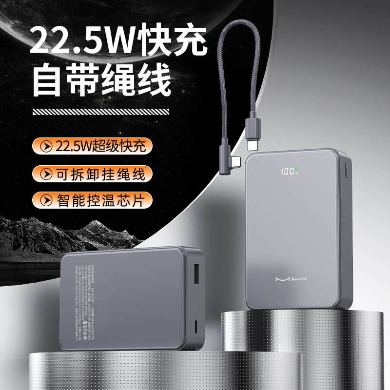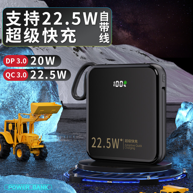跨境礼品3C认证自带线22.5W超级快充电宝快充轻薄便携移动电源定