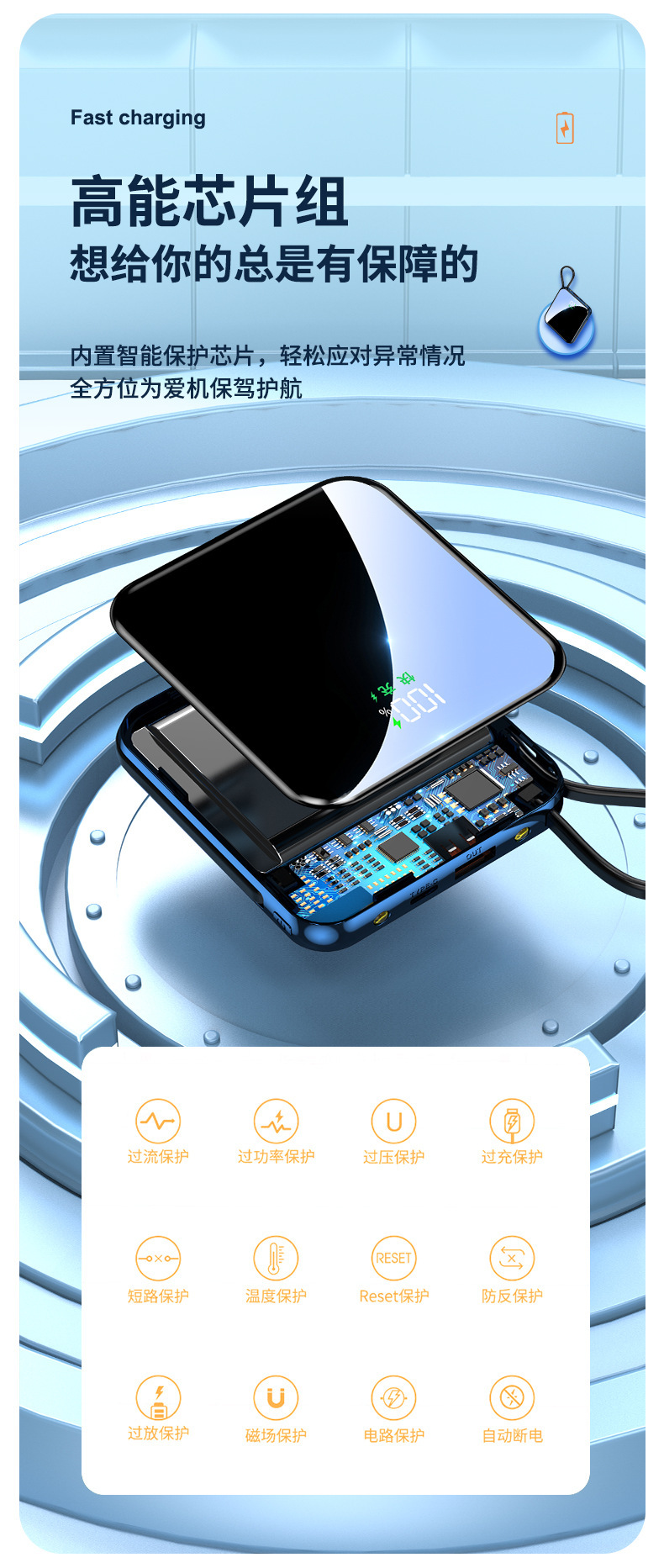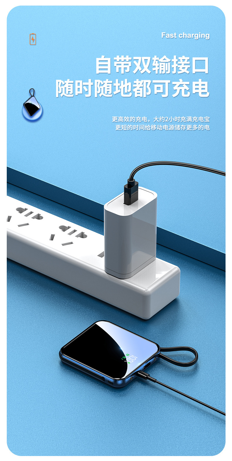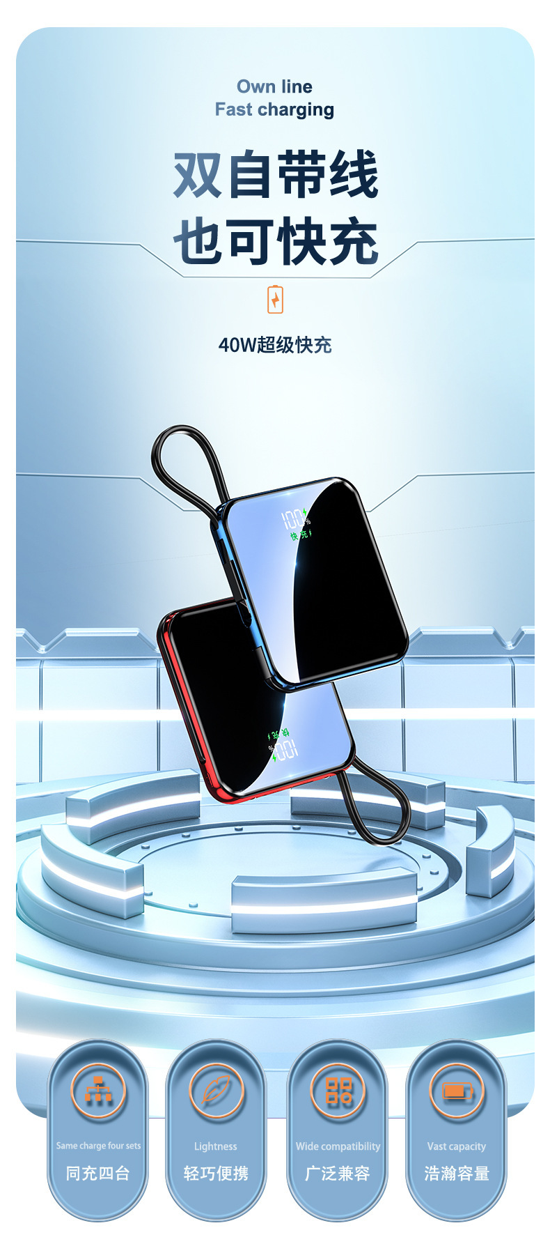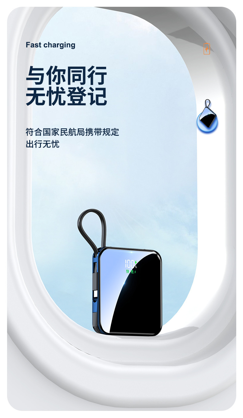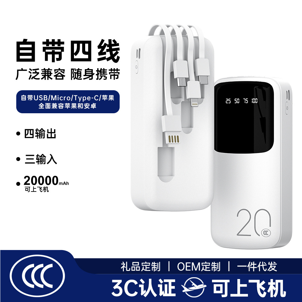 跨境礼品数显自带线充电宝3C认证移动电源可上飞机企业礼品
