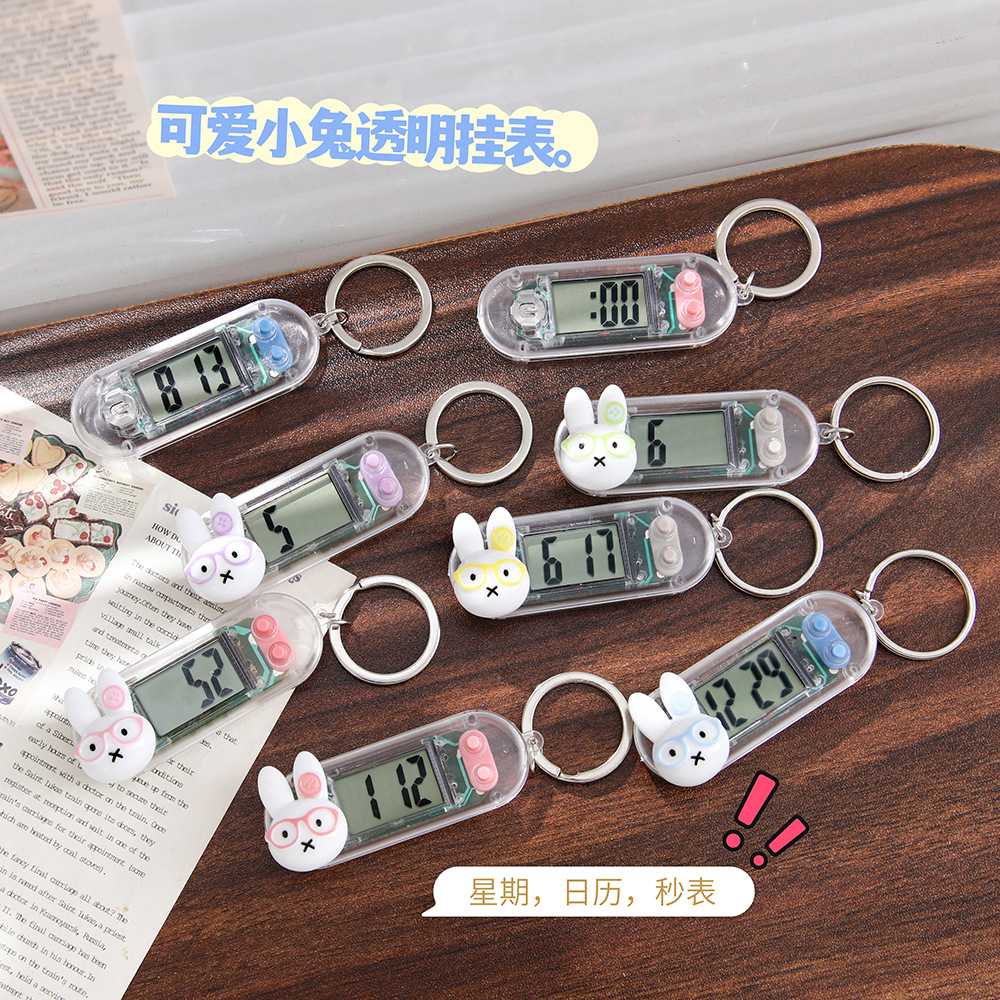 卡通可爱小兔透明小挂表便携钥匙扣电子表学生学习考试静音时间表