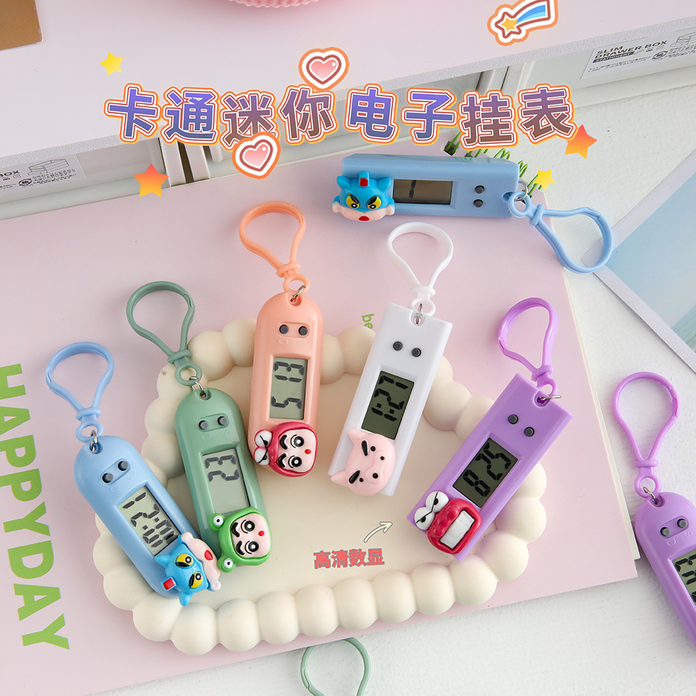 学生漫画かわいい電子時計コンパクトミニポータブルペンダント高価値時間ペンダント時計キーホルダー付き