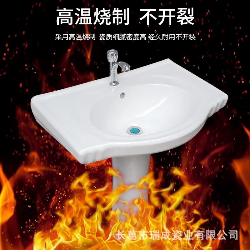 棚户改安置房便宜陶瓷立柱盆陶瓷家用洗手盆分体式安置房小户型落地式一体阳台洗脸盆