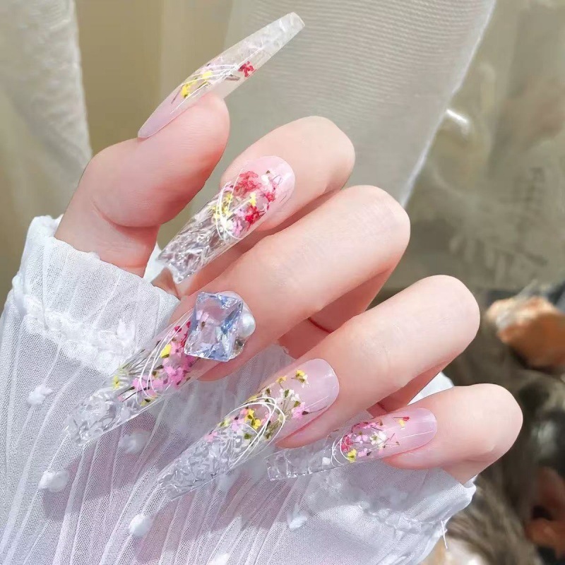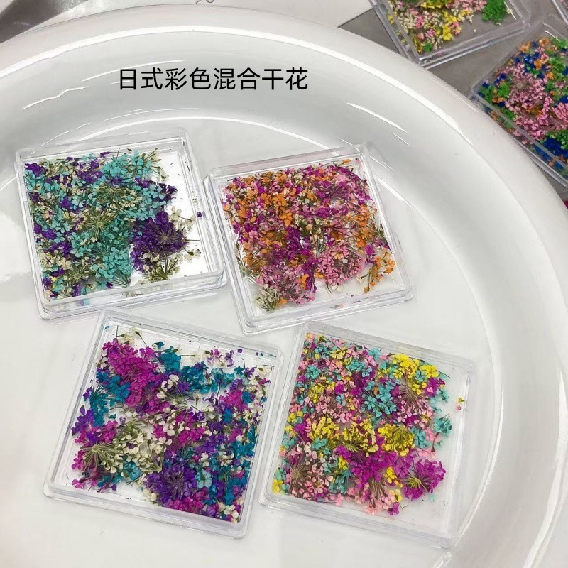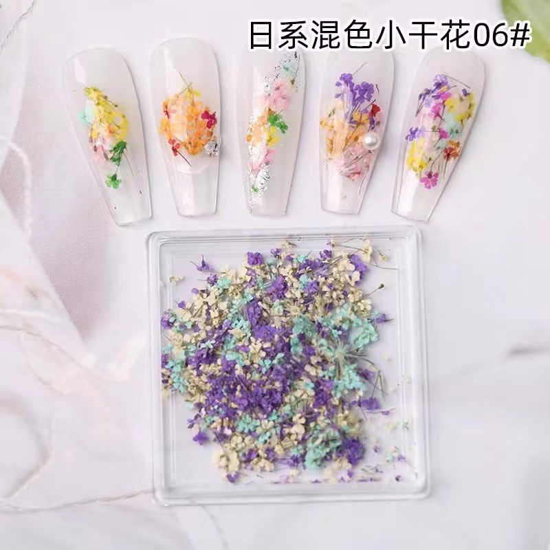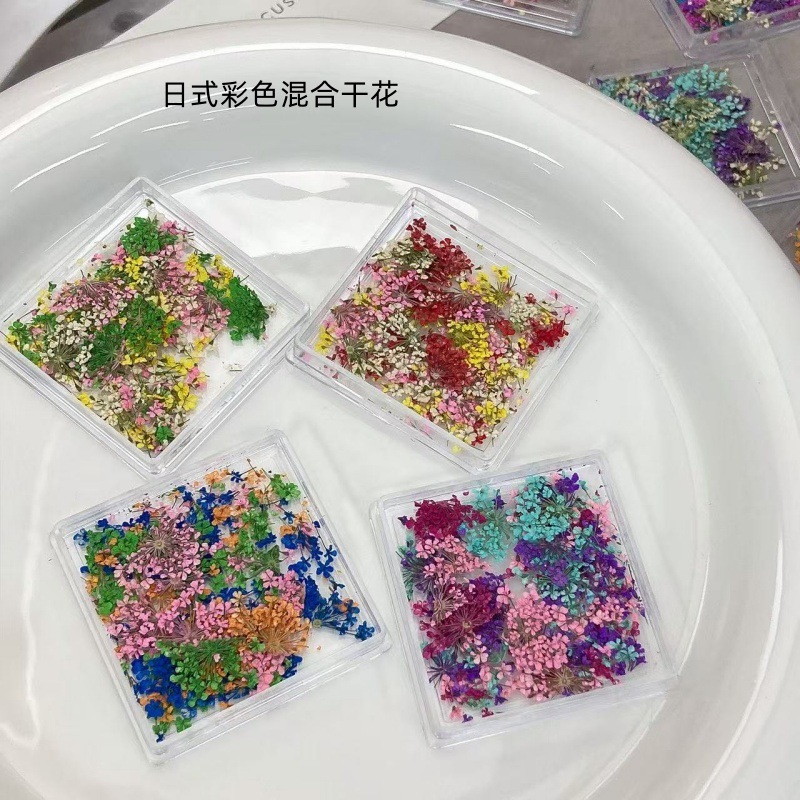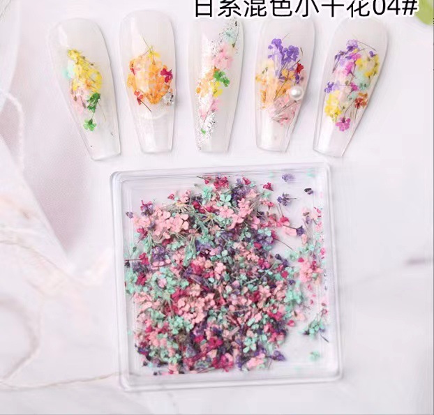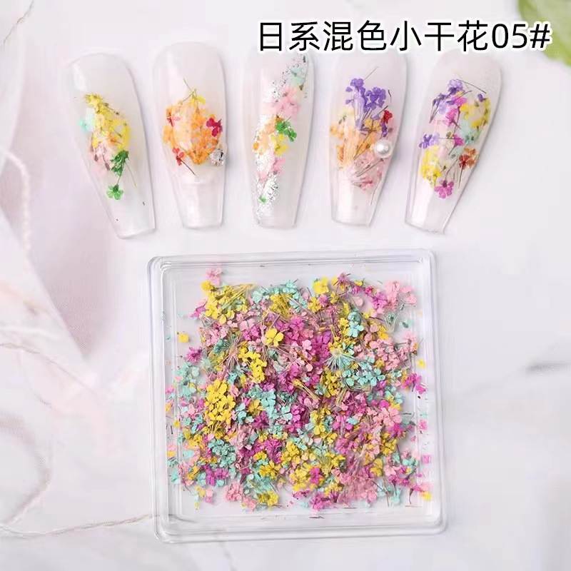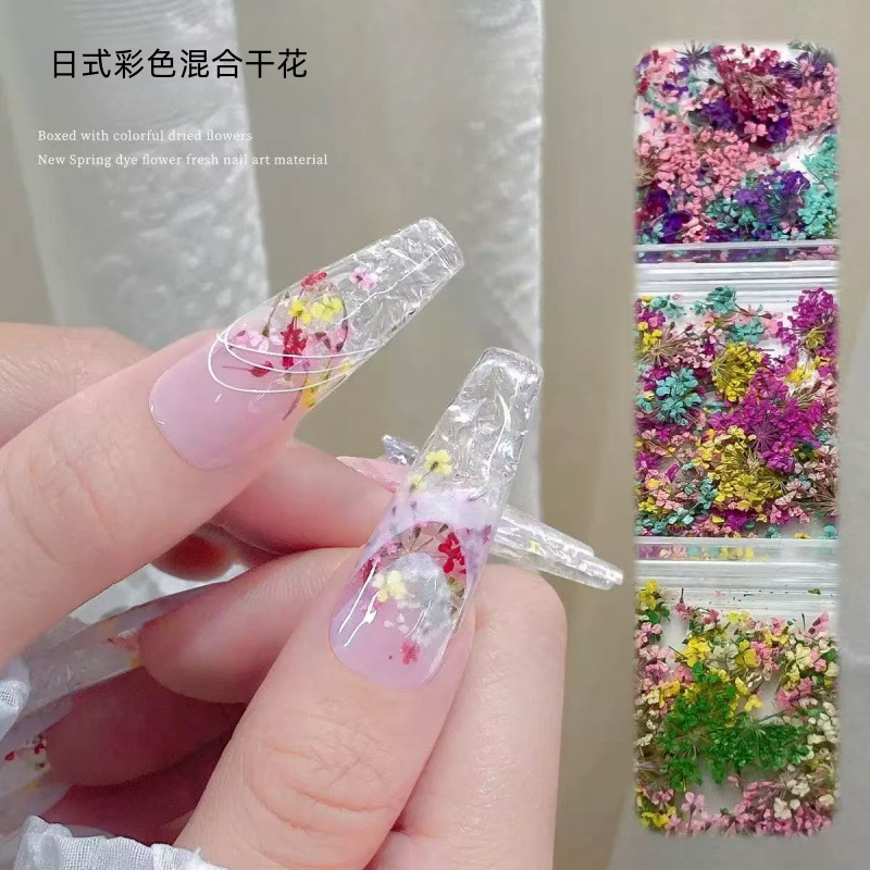 国境を越えた新しいネイルアートのドライフラワー日系insが本物の花を混ぜている
