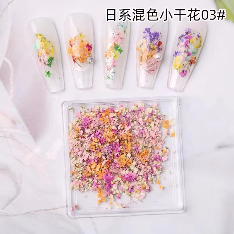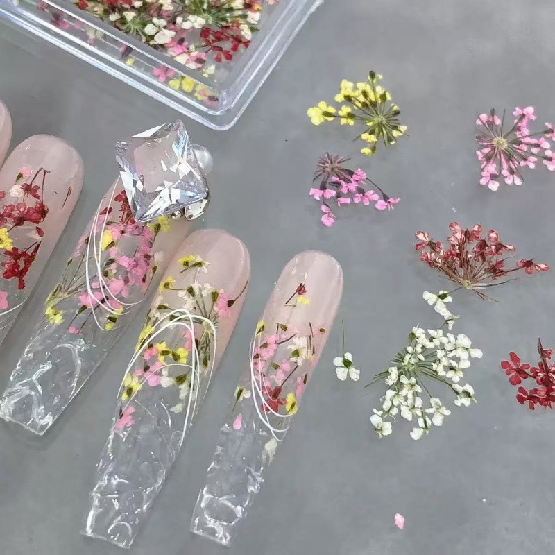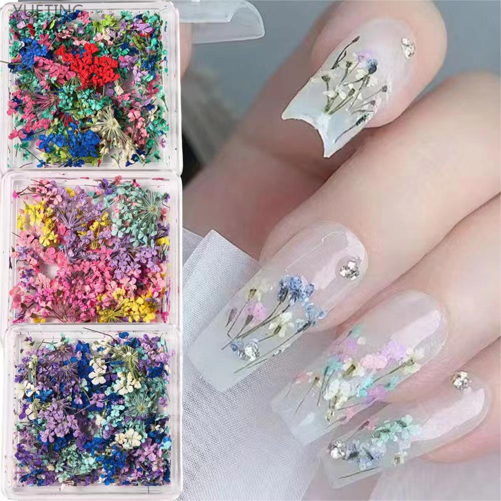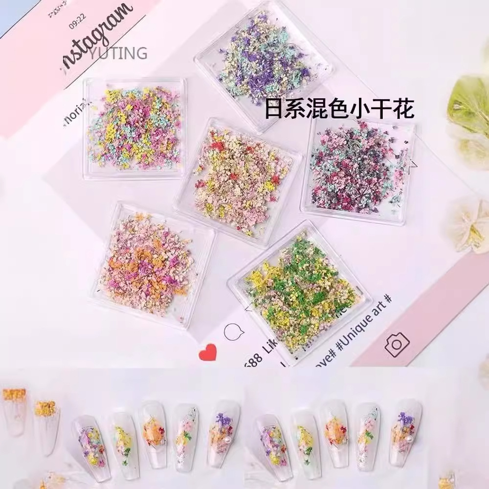 クロスボーダーネイルデコレーション ドライフラワーネイル フォレスト系 カスミソウ 12グリッド 48個入り 本物の花ネイルデコレーション ネイルステッカー