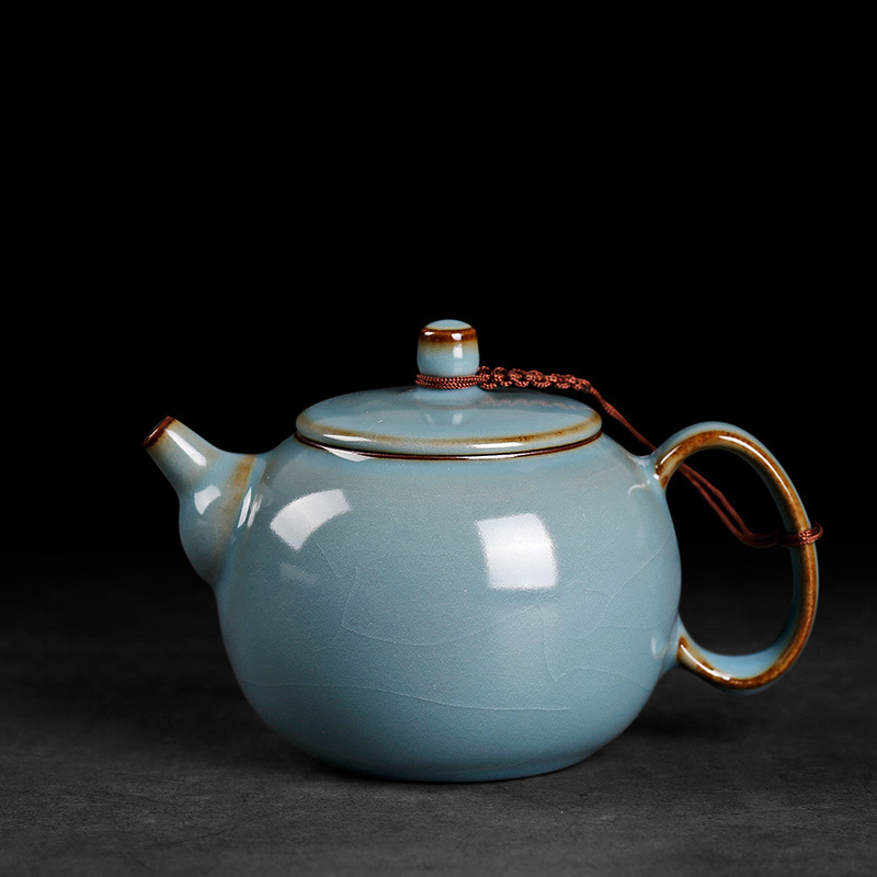 新台湾柏韻汝窯工夫茶器セット氷裂釉中国式復古汝窯オフィス家庭用ティーポット