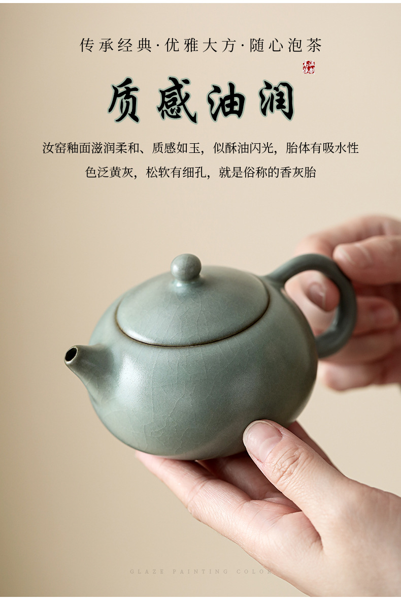 汝窯西施壺茶器、陶磁紫砂、家庭用、レトロ、手作り、功夫汝磁、茶器、お茶を淹れるのに最適、シンプル