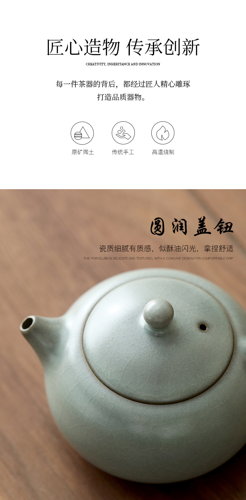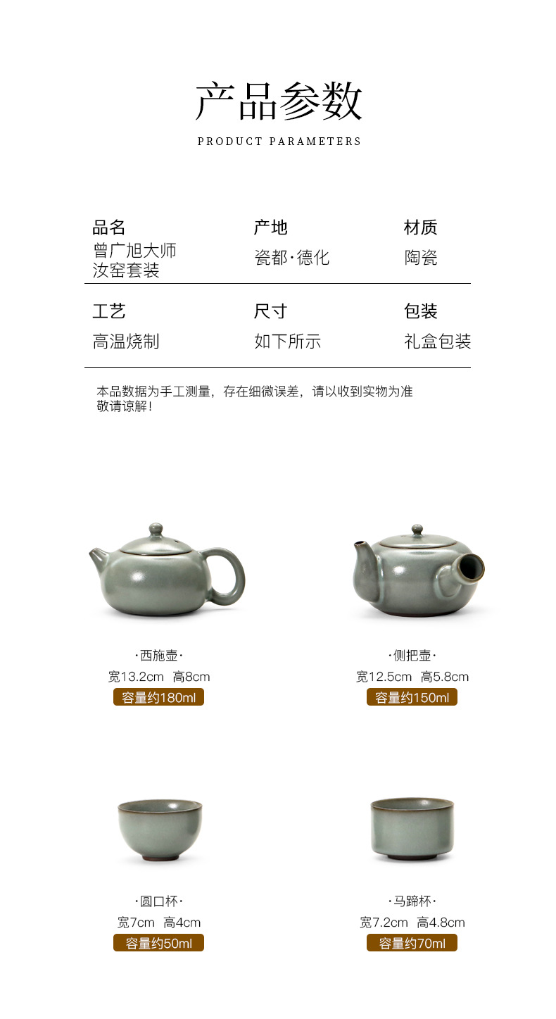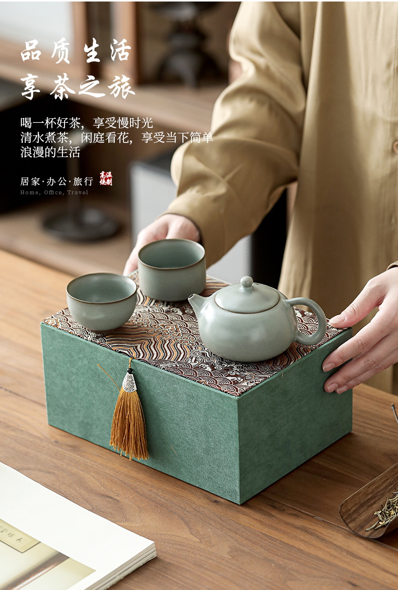 汝窯カンフー茶器セット家庭用オフィスプレゼント高級ティーポット