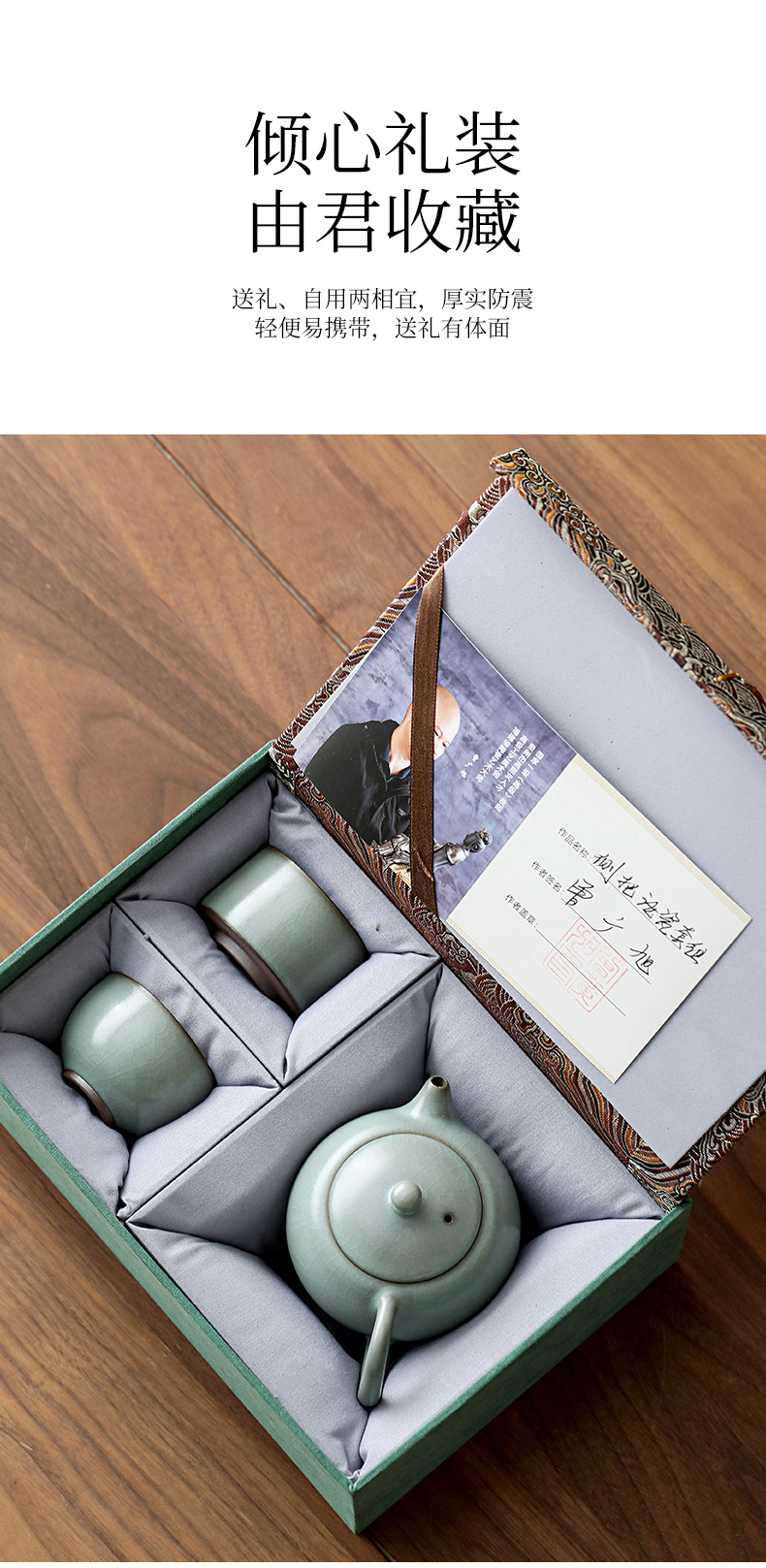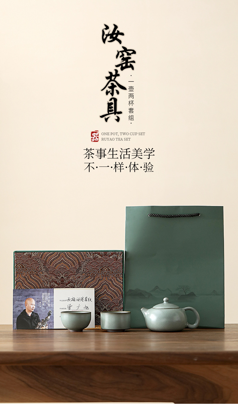 曽広旭大師汝窯手作りティーポット2杯の工夫茶器セット家庭用の軽贅沢高級ギフトボックス