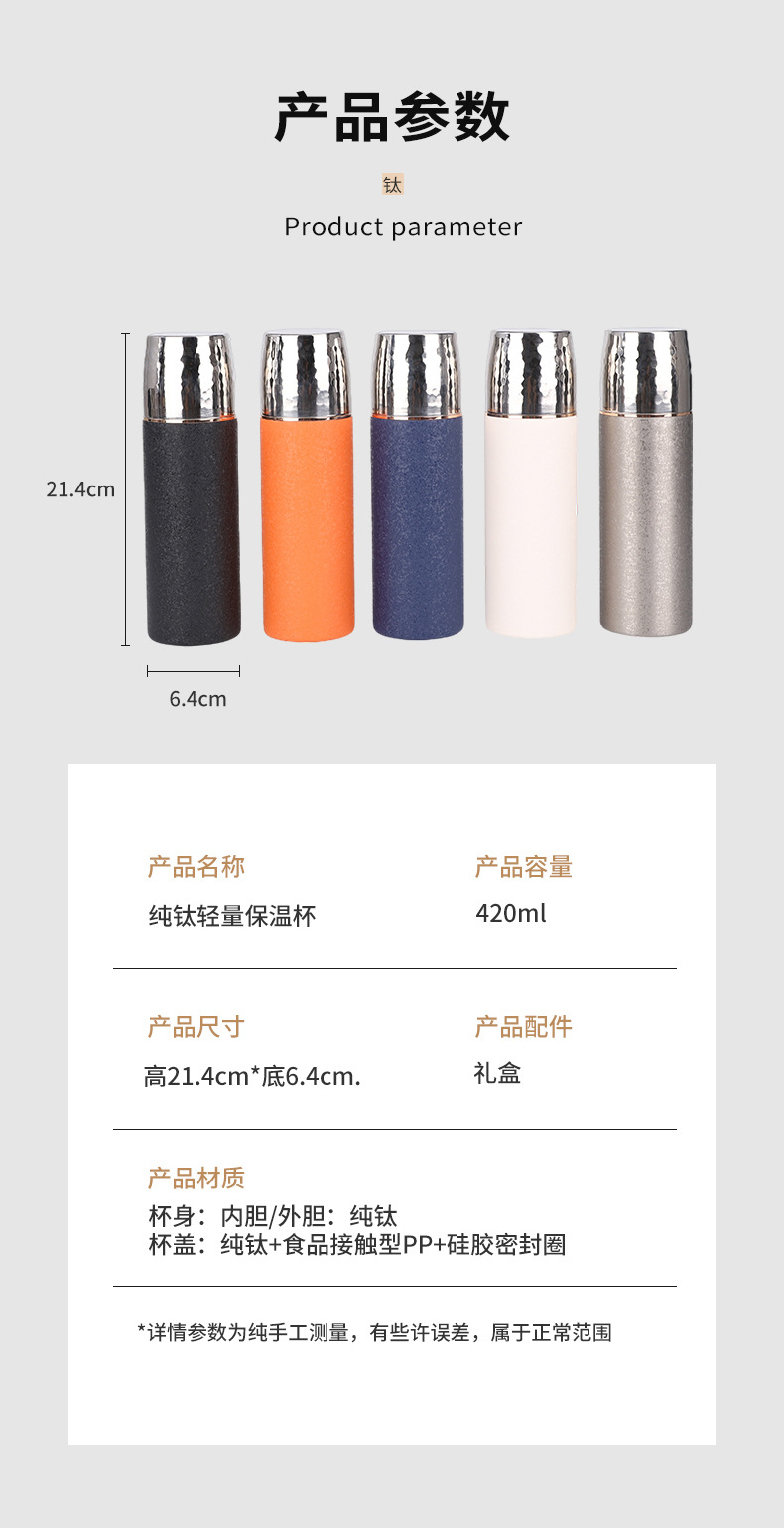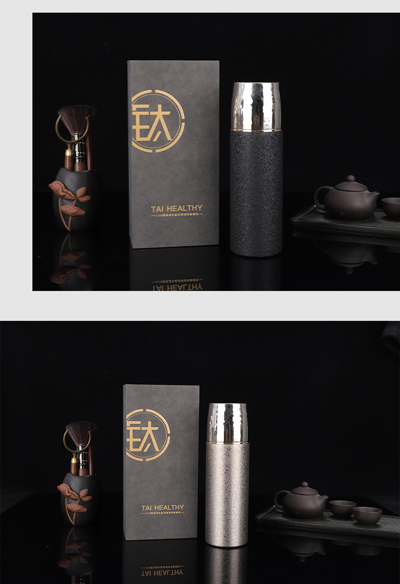高級純チタン保温カップ高颜値男女史蒸し器カップ携帯全チタンカップお茶カップビジネスプレゼント