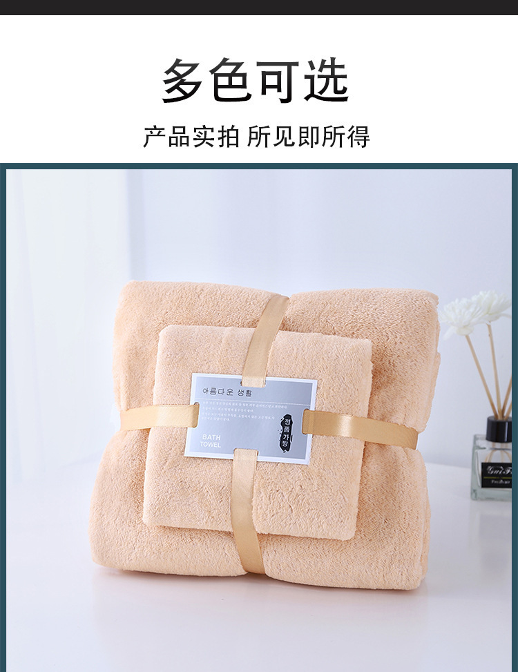 国境を越えた卸売厚みのあるタオルバスタオル無地コーラルベルベット母子セットギフト付き柔らかく吸収性と糸くずの出ない