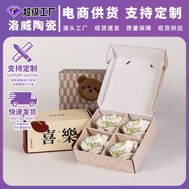 洛威景德镇骨瓷餐具礼盒套装陶瓷定制源头工厂高颜值碗具碗盘套装