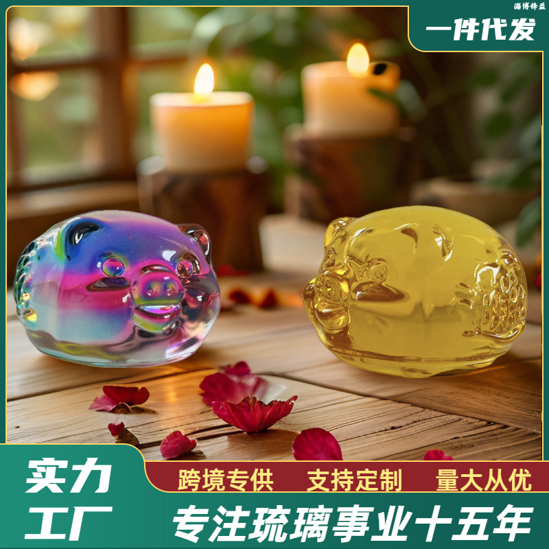 【淄博ガラス】卯年 イエロークリスタル 干支 豚 装飾 オフィス 車 ギフト ピンククリスタル クリエイティブクリスタルストーン