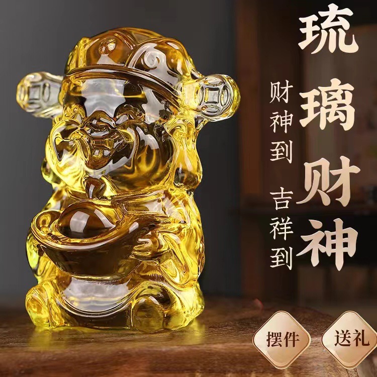 【淄博琉璃】五路財神像、家庭やオフィス用の装飾品、水晶工芸品、ギフト、黄水晶