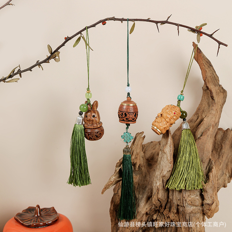 新品檀木子豚キーホルダーストラップ自動車キーペンダントペンダント緑檀紫檀黒檀木製アクセサリー