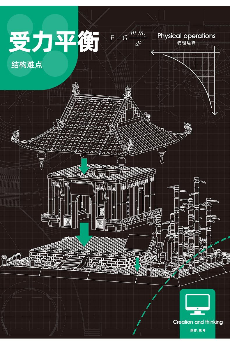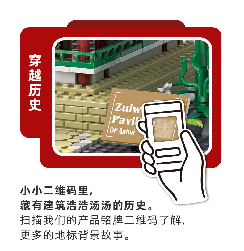 万格5236安徽楚州酔翁亭中国風古建築の組み立て小粒積み木玩具の置物代発