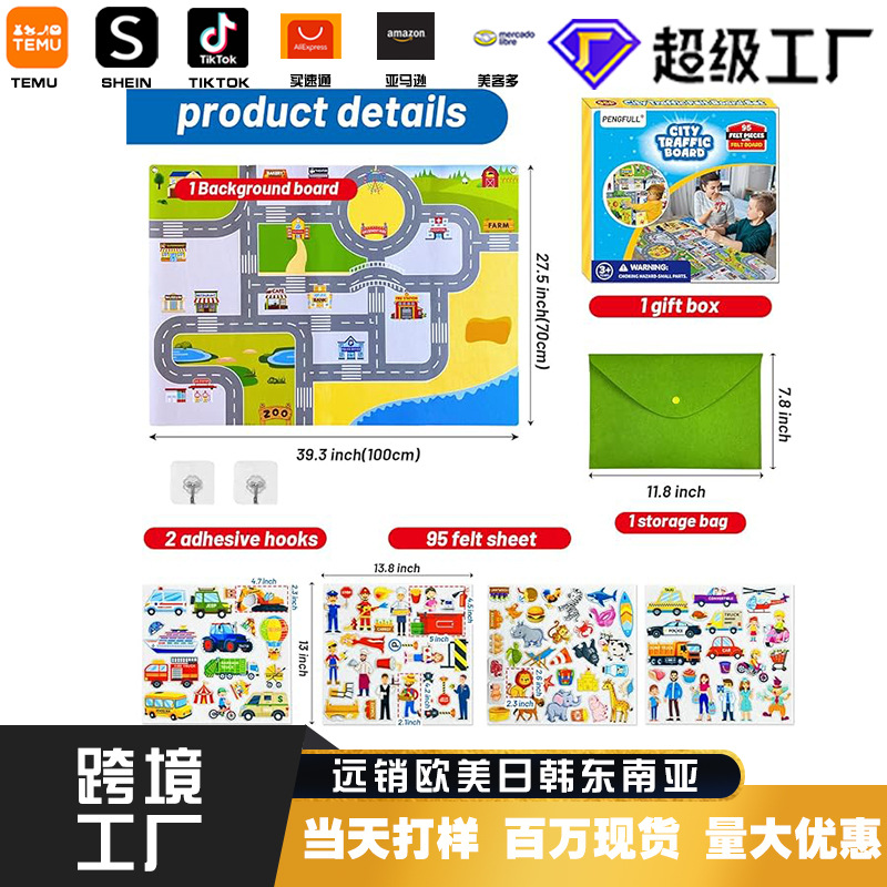 跨境儿童交通工具毛毡故事板套装早期教育益智玩互动玩具批发