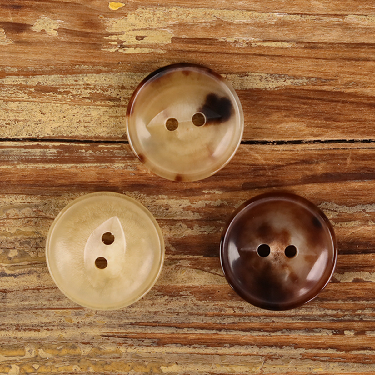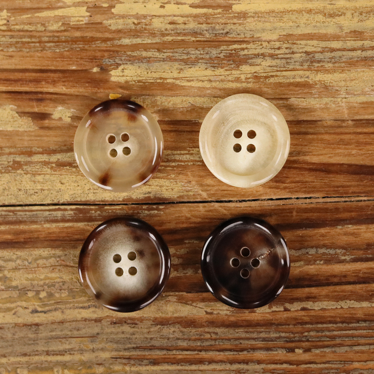 黄色の木目調の幅広樹脂ボタン カーキ色 ベージュ色 ダークブラウン色 黒 ヴィンテージボタン ニットウェアボタン
