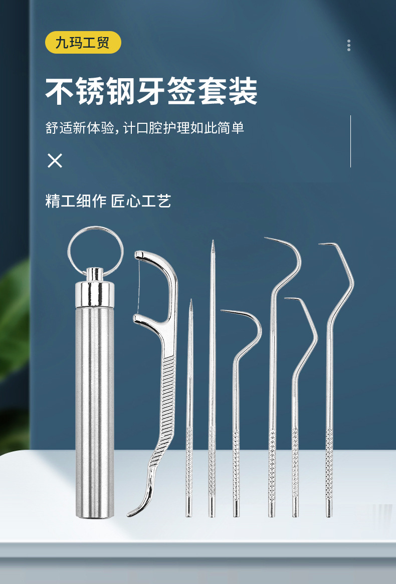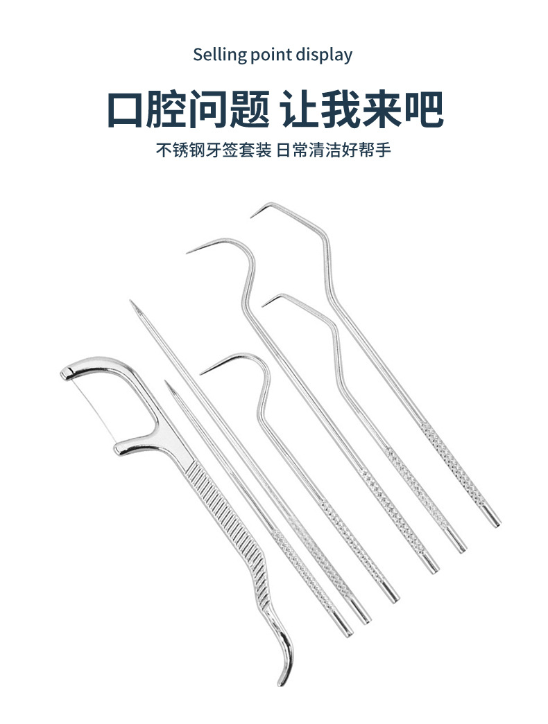 家用剔牙工具套装 不锈钢牙签筒牙签套装 口腔护理牙线牙签工具套