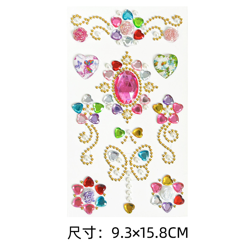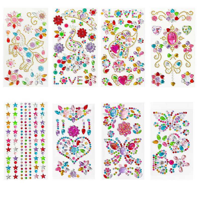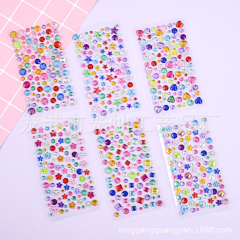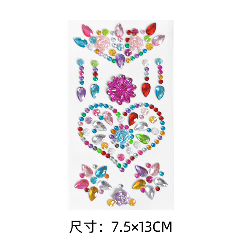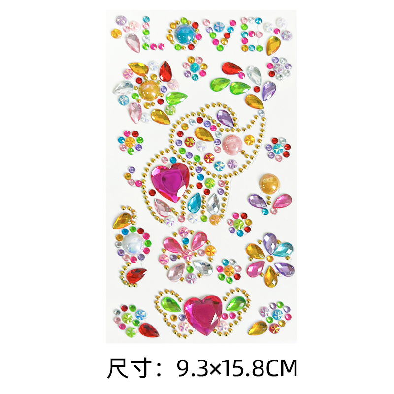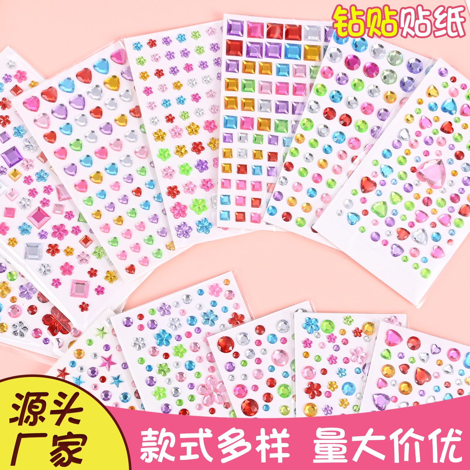 クロスボーダー卸売カラフルなダイヤモンドステッカーアクセサリーカスミソウ宝石子供のアクリル DIY 粘着フェイスステッカー愛ステッカー