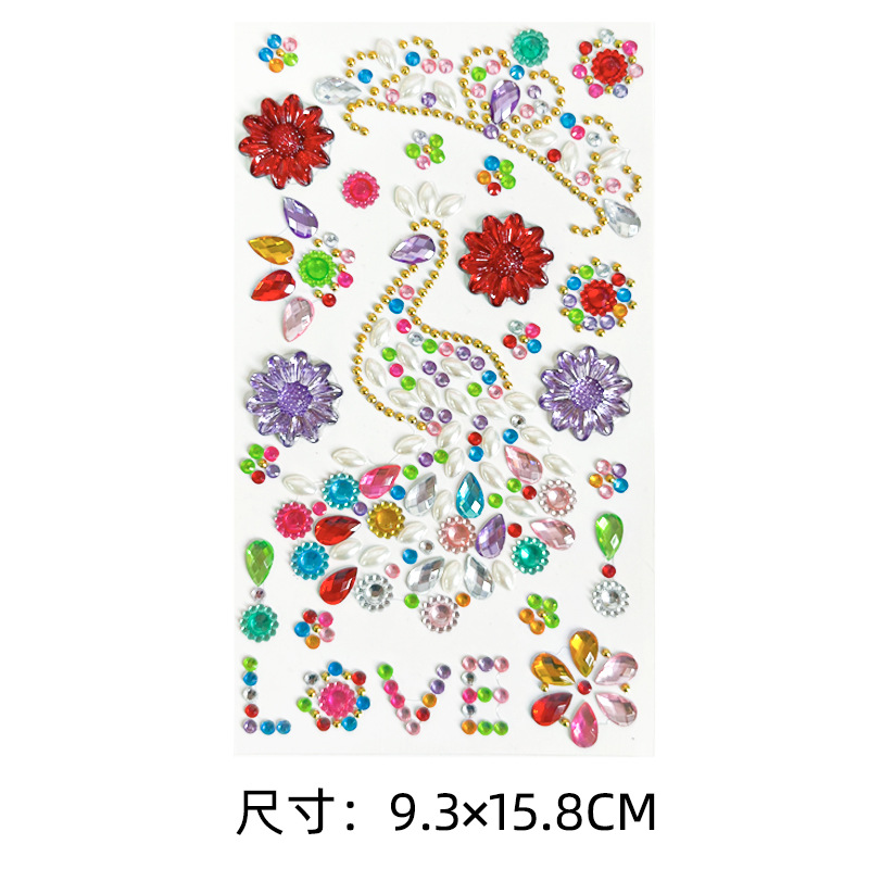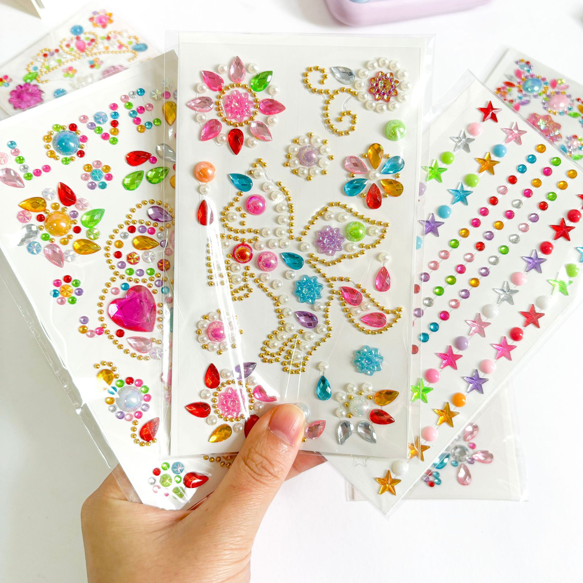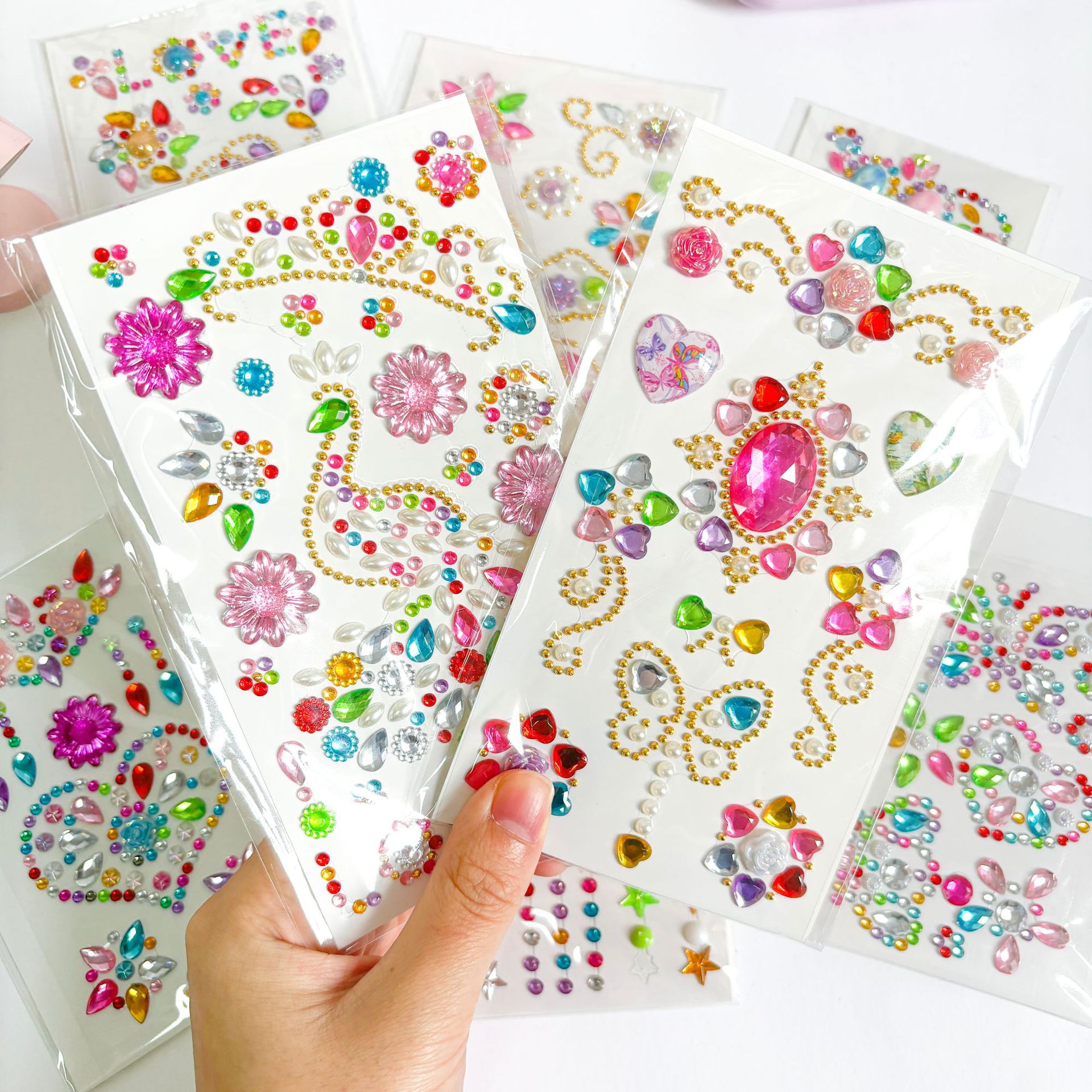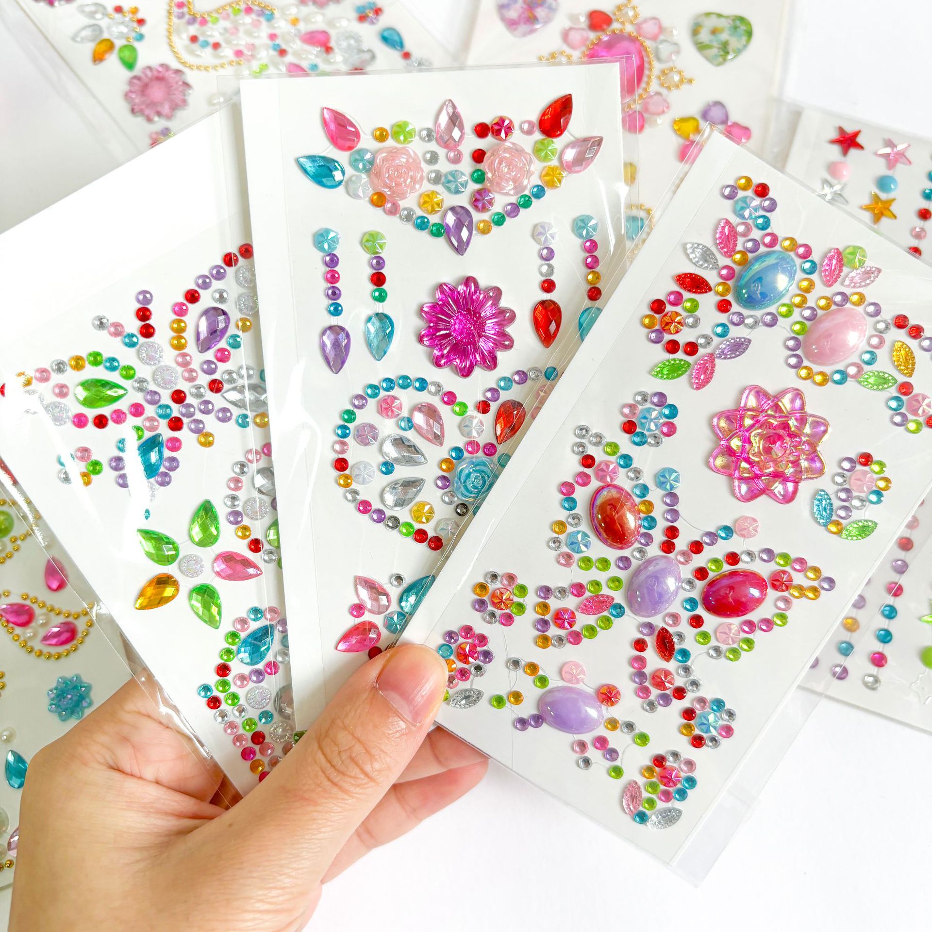 クロスボーダー卸売カラフルなダイヤモンドステッカーアクセサリーカスミソウ宝石子供のアクリル DIY 粘着フェイスステッカー愛ステッカー