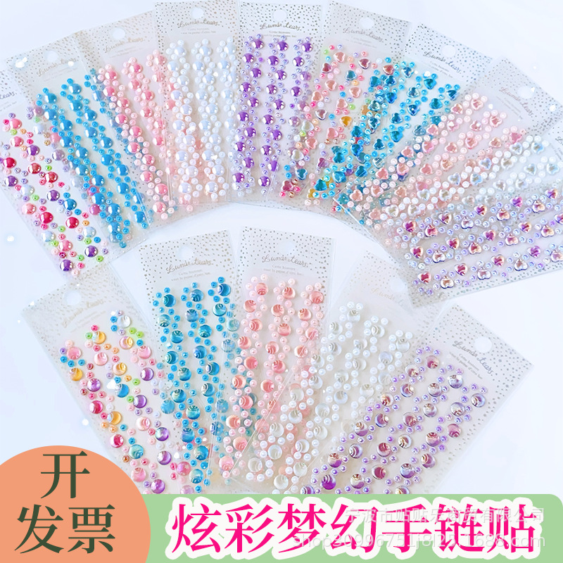 現物のアクリルのドリルはまぶしい顔を貼って子供の演技のネイルアートの化粧を貼って眉毛の心を貼って真珠の装飾を貼ってゴムをつけます。