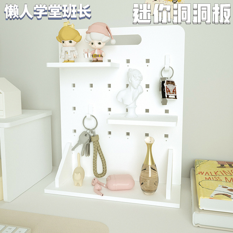 穴の板の物置棚の事務ステーションのデスクトップの縦型の多円穴の収納棚の寮の机の上で万能板を飾ります。