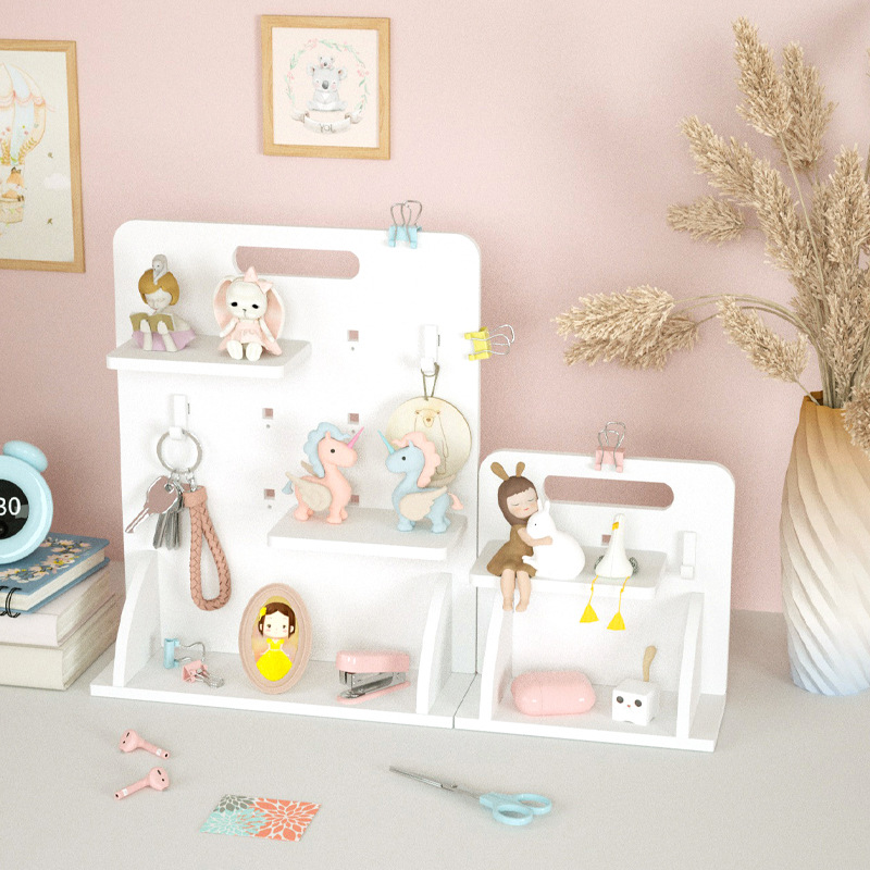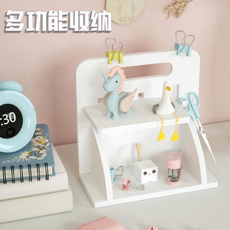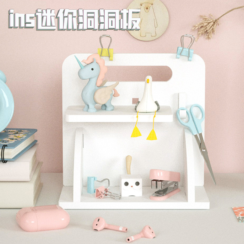デスクトップ穴板本棚文房具収納神器学生寮テーブルネット赤ins層仕切り棚