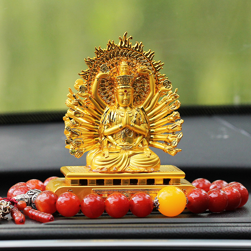 新型の車の置物の両面観音は贈り物の置物の合金の千手観音の車内の置物を送ります。