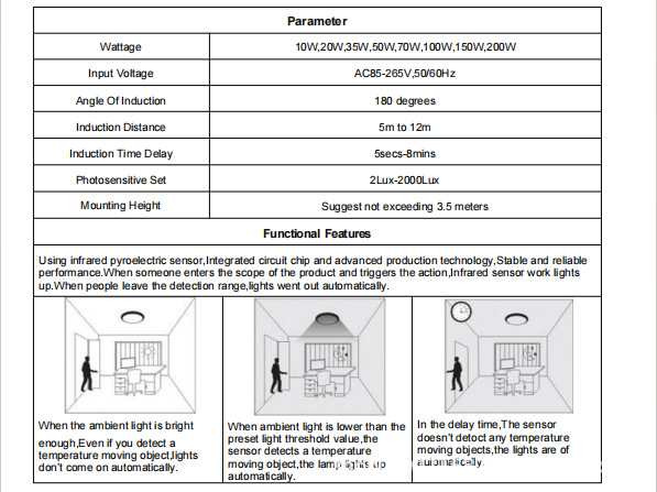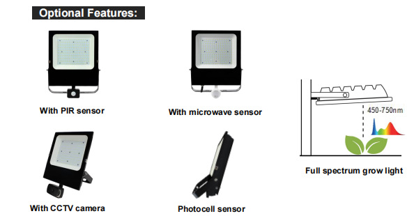 调功率调色温,光感,PIR/微波感应, CCTV摄像头等;