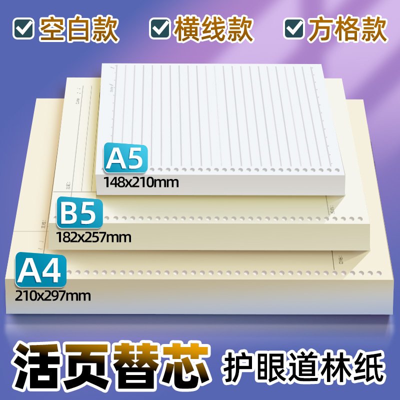 B 5バインダー替芯ブランク道林紙20/26/30穴横線ブランクa 4コーネル横線a 5コーネル方