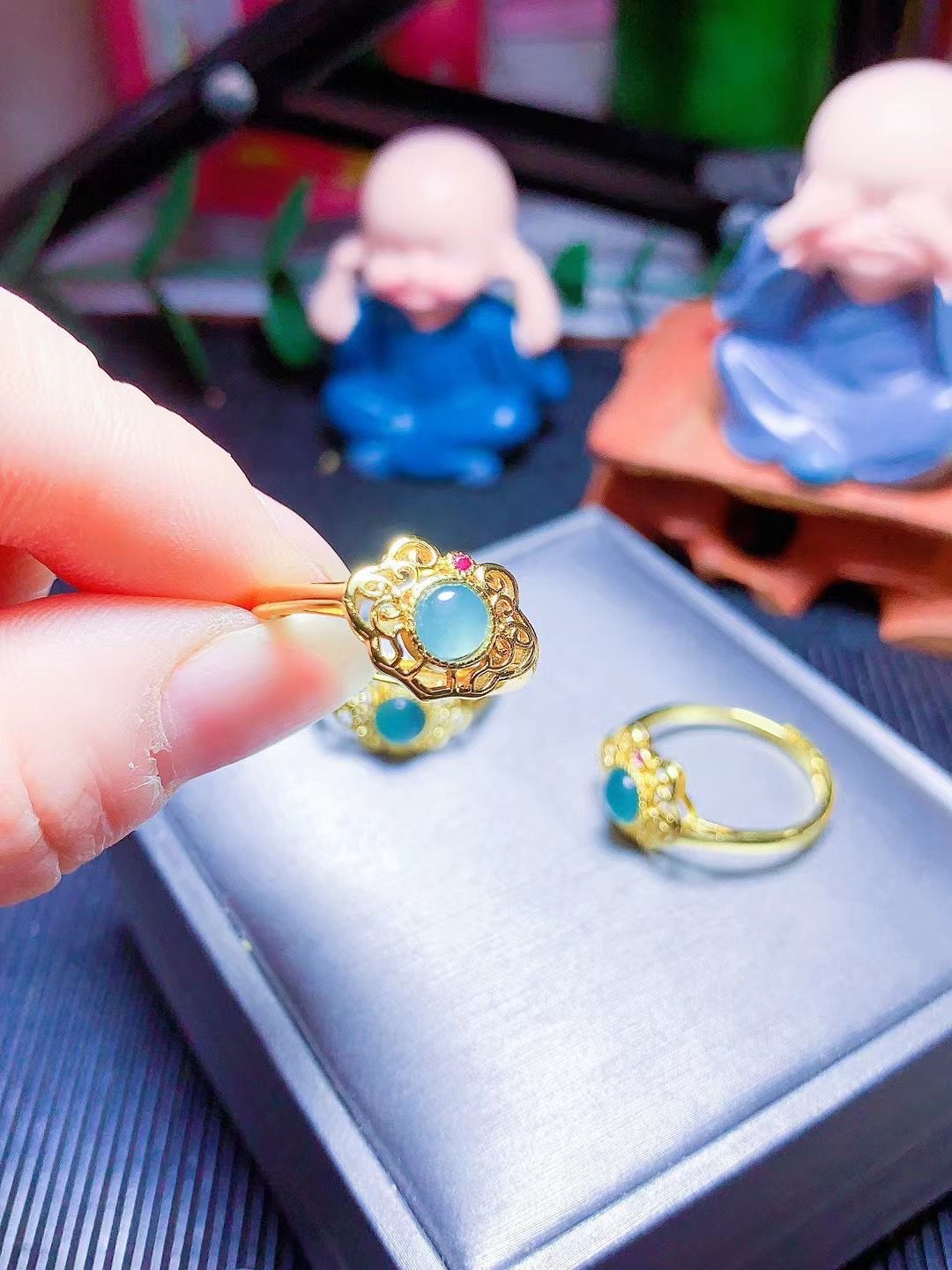 鄒六禧天然藍水翡翠危険材料仏公ペンダントS925銀モザイク弥勒仏玉ペンダントメーカー直供