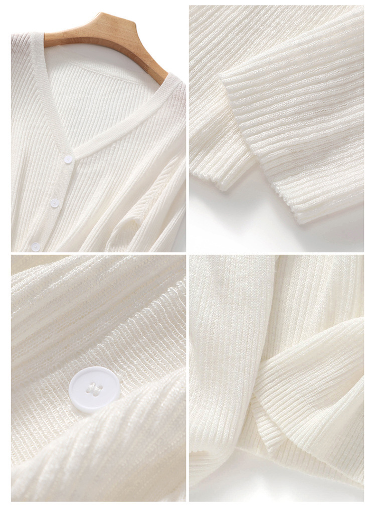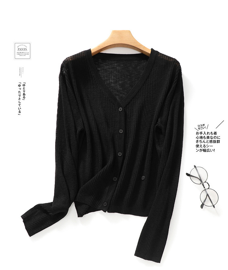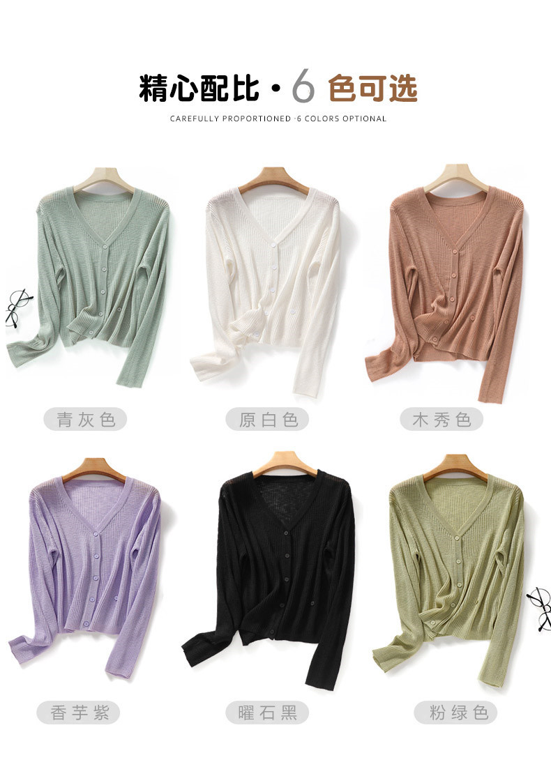 竹リネンニットカーディガンジャケットルーズな新しいスタイルの模造リネン多用途レイジースタイルVネック中空日焼け止め服女性用