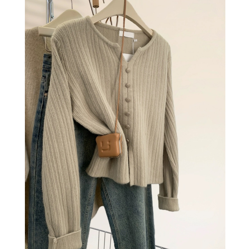100純ウール小vネック長袖カーディガン2025春秋新作ニットセーターソフトモチモチ気質コートブーム